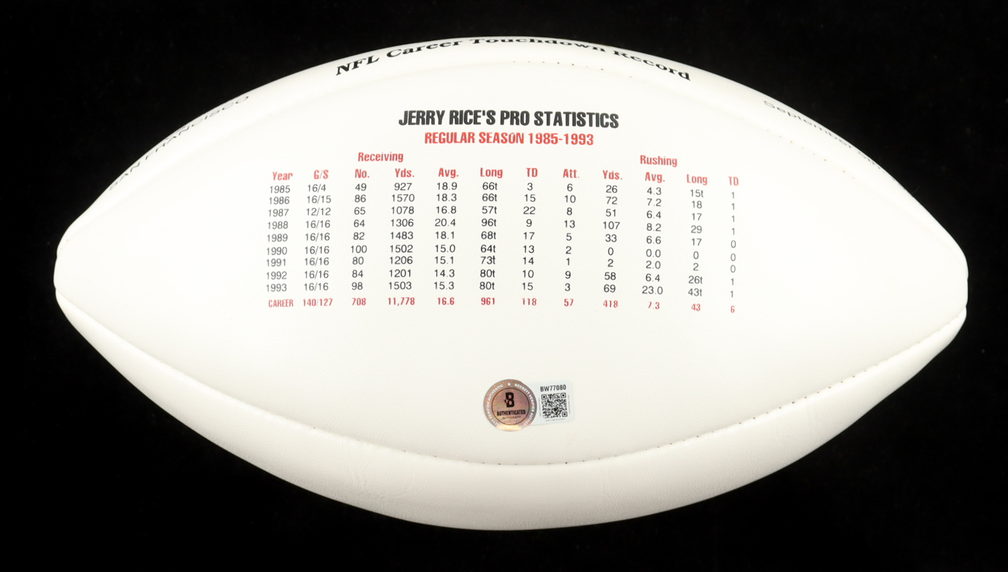 Jerry Rice Signed 49ers 127 Career Touchdown Record Logo Football (Beckett)