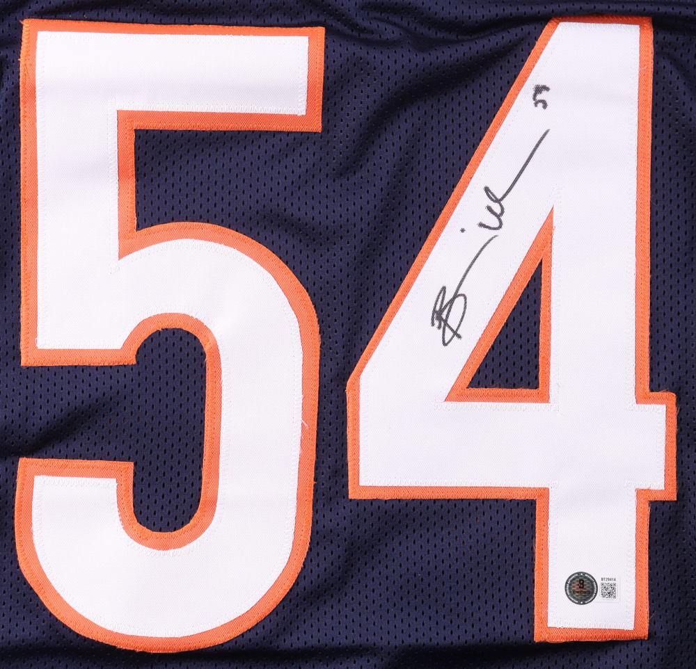 Custom jersey with everything sewn on, size XL. Hand-signed by Brian Urlacher (HOF).
