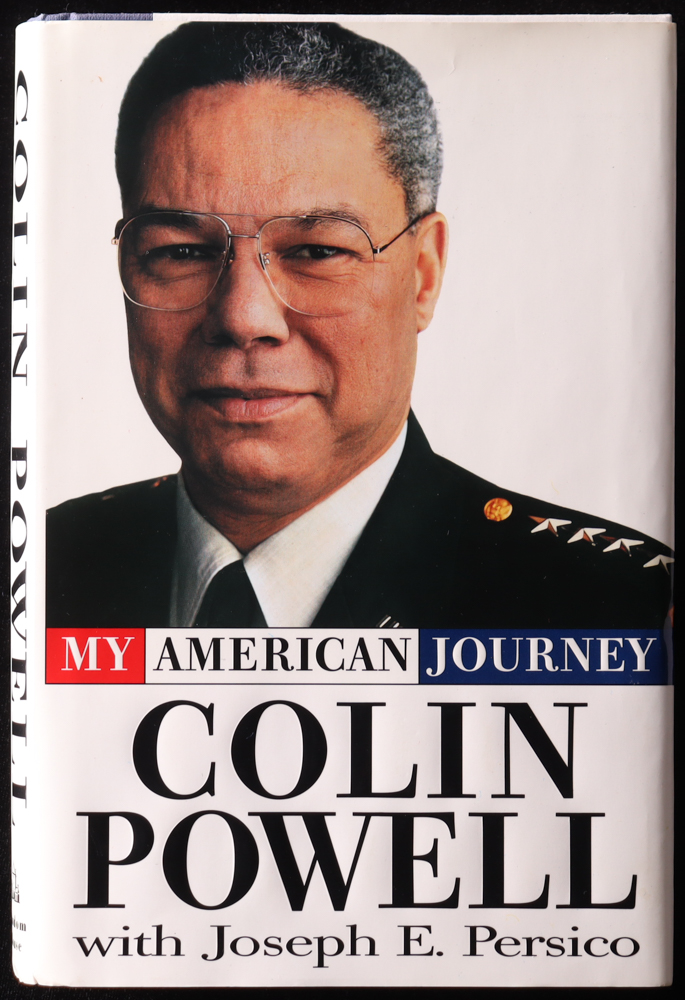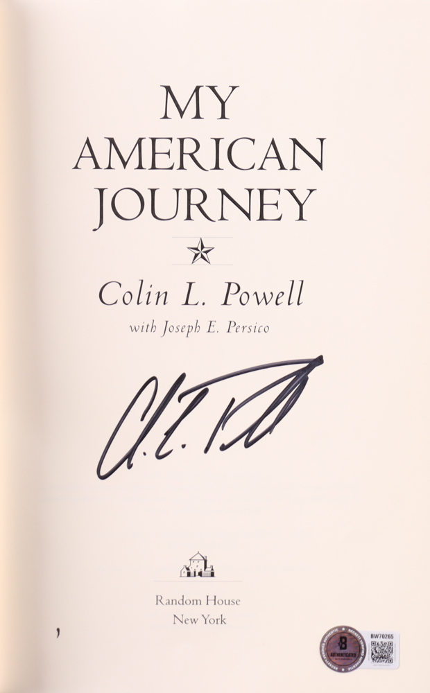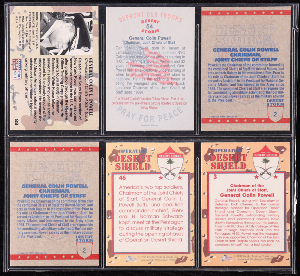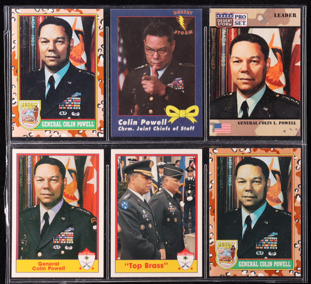 Hardcover book has been hand-signed on the inside title page by Colin Powell. Book also comes with set of cards from 1991 from Desert Storm sets.