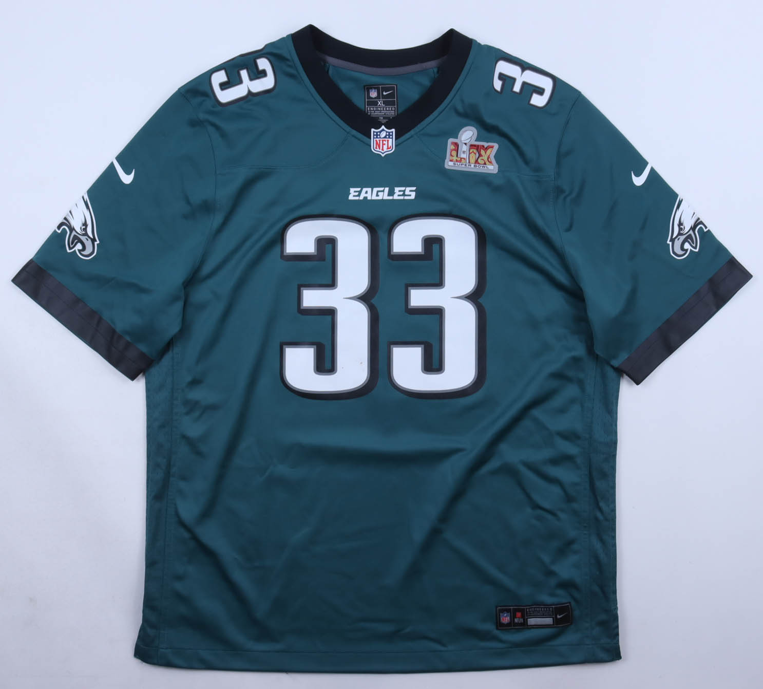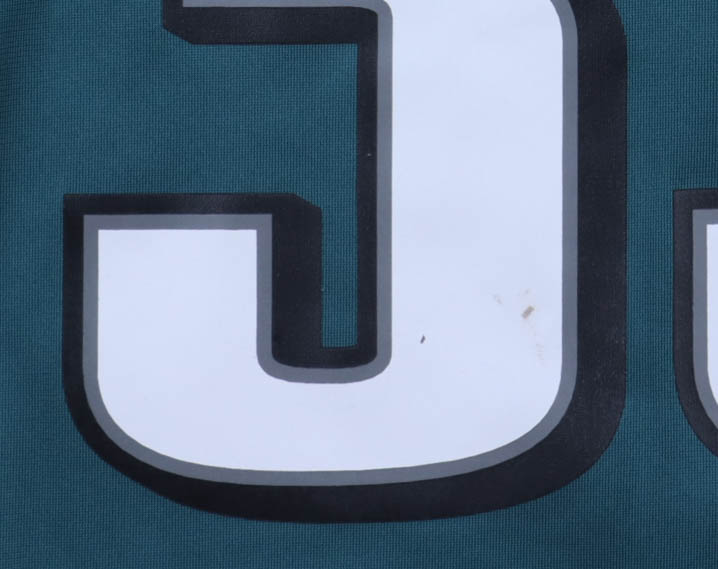 Nike jersey with everything pressed on, size XL. Hand-signed by Cooper DeJean (Philadelphia Eagles). Please note, there is staining on the front number.