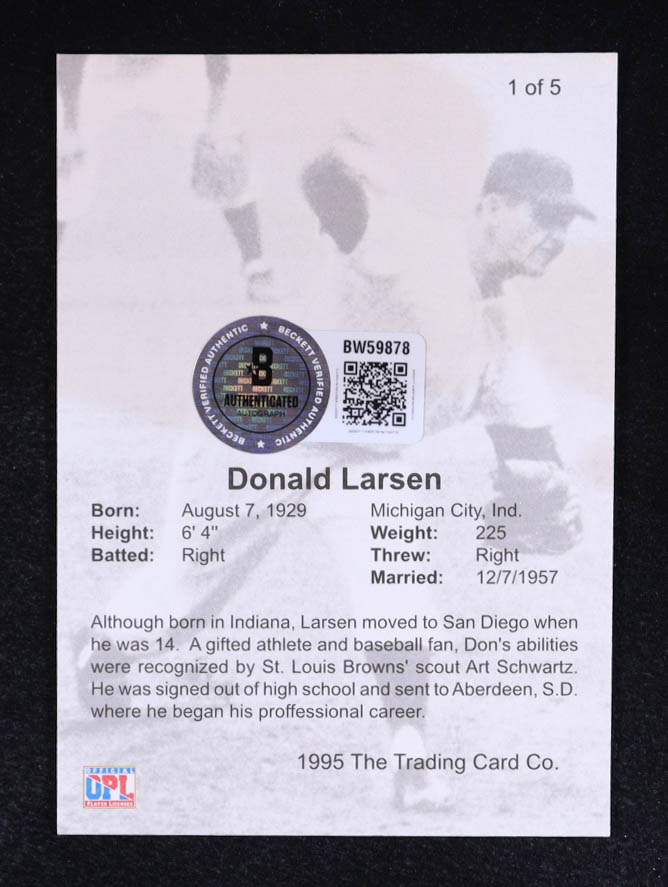 Don Larson 1995 Front Row Premium All-Time Greats Auto #1