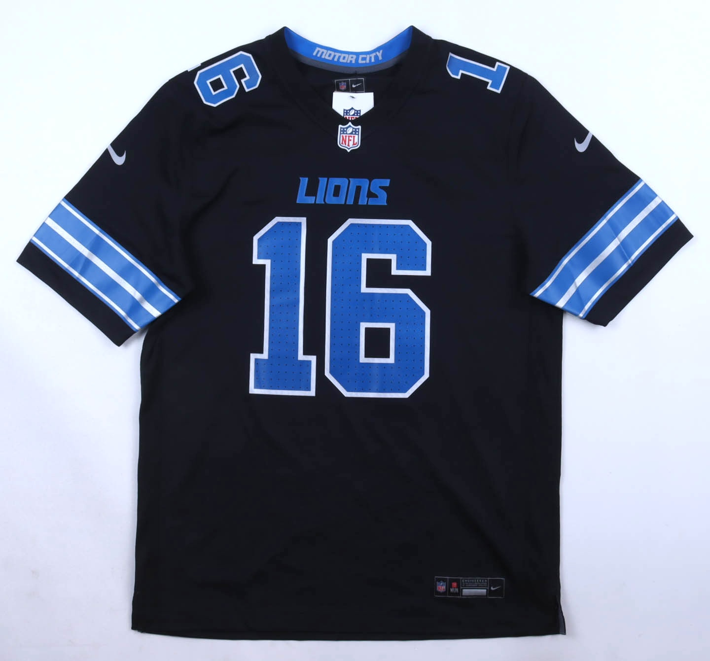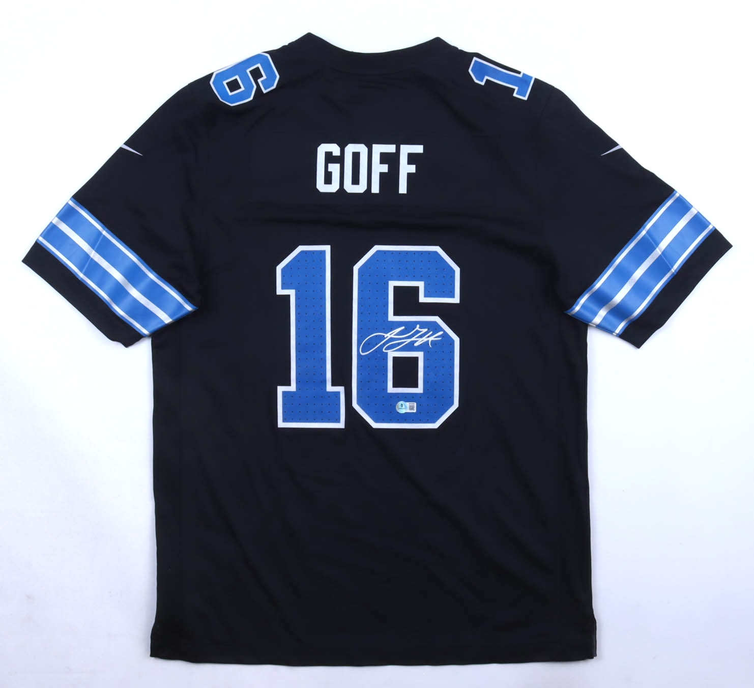 Nike authentic jersey with everything pressed on, size L. Hand-signed by Jared Goff (Detroit Lions). Please note, there is staining on the reverse number.
