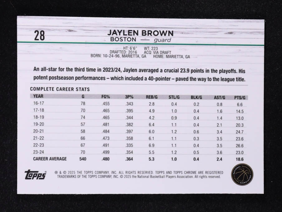 Jaylen Brown 2024-25 Topps Chrome Magenta Speckle Refractors #28 #240/350