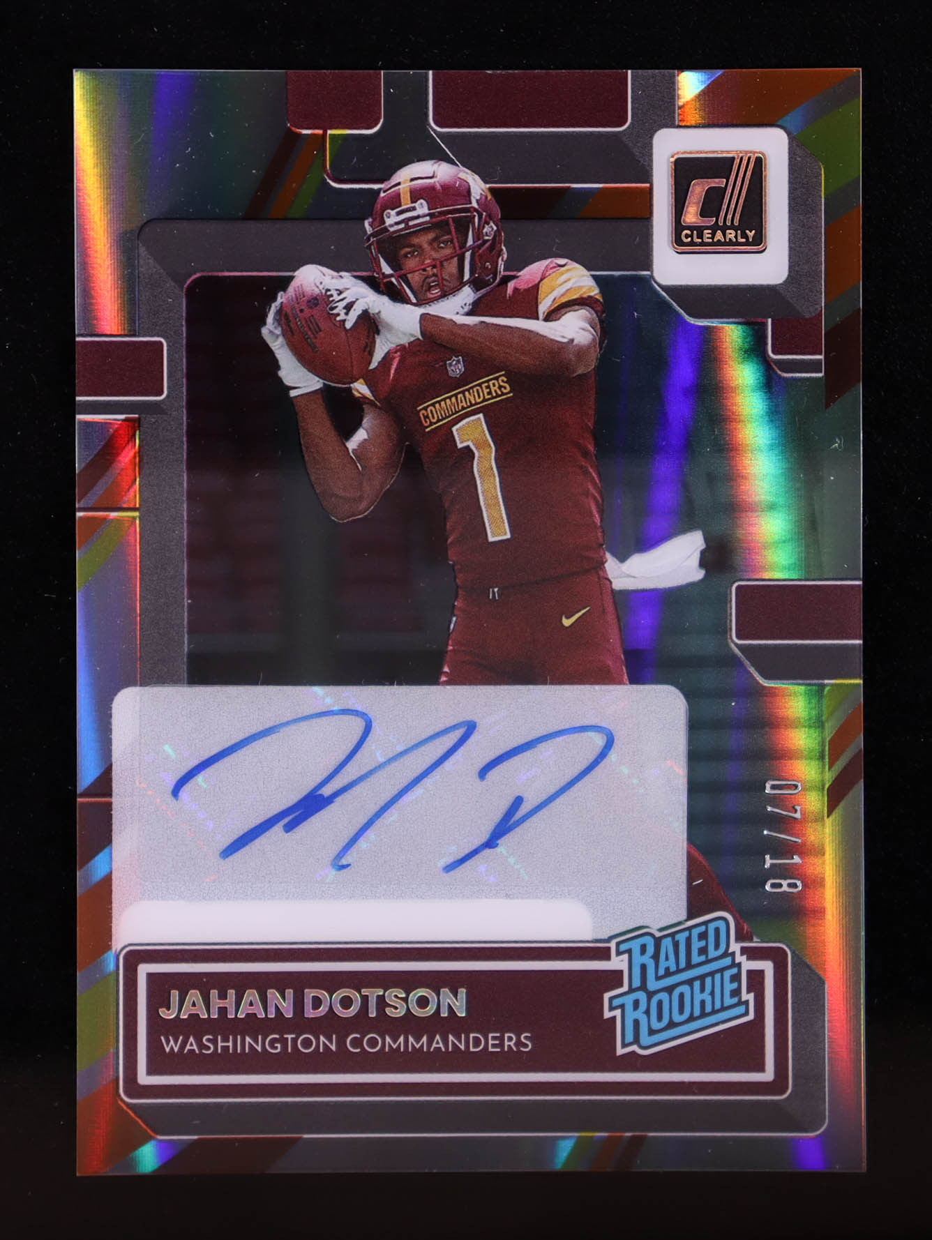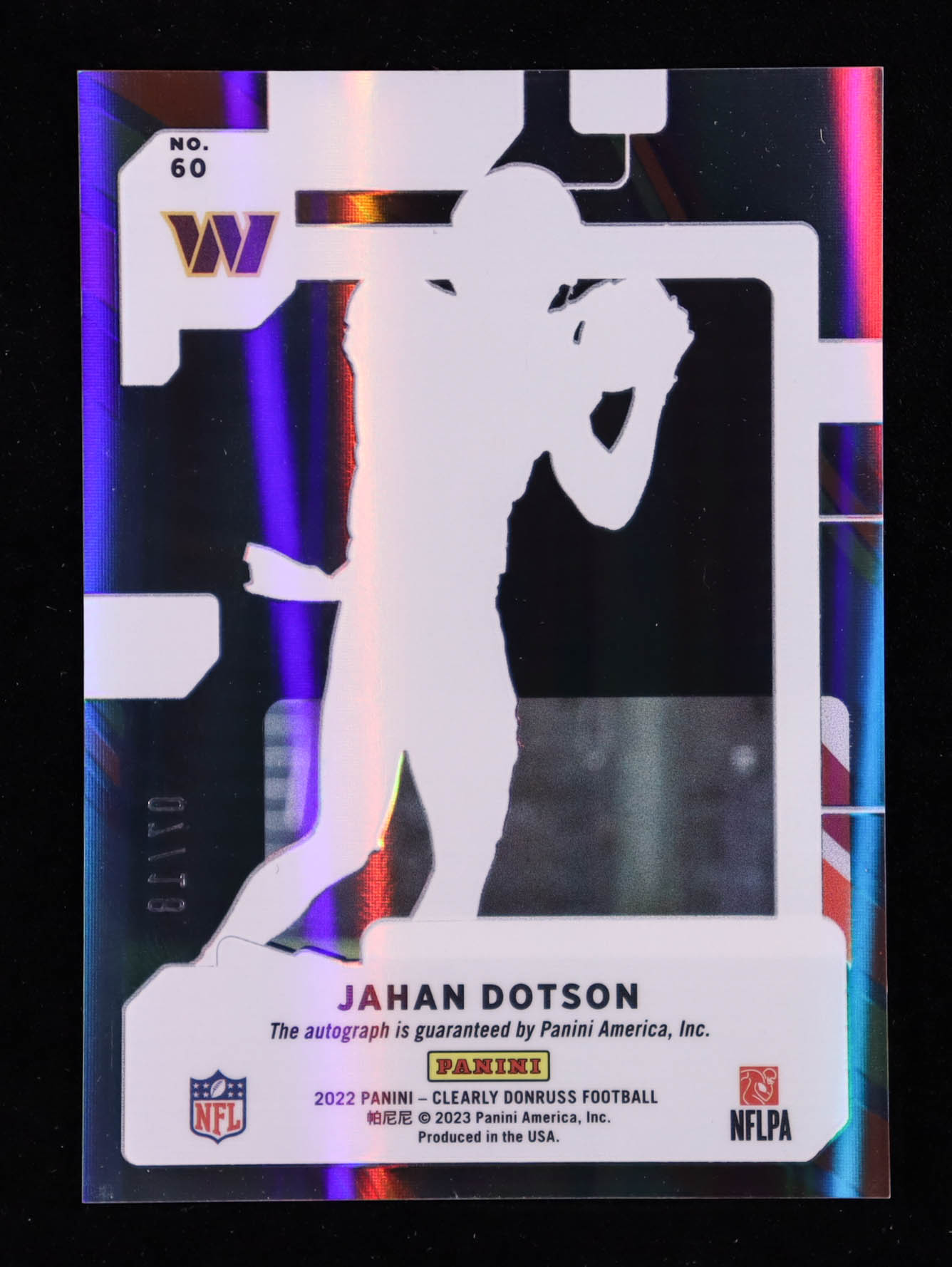 Jahan Dotson 2022 Clearly Donruss Clearly Rated Rookie Autographs Vintage Stripes #60 #07/18 RC