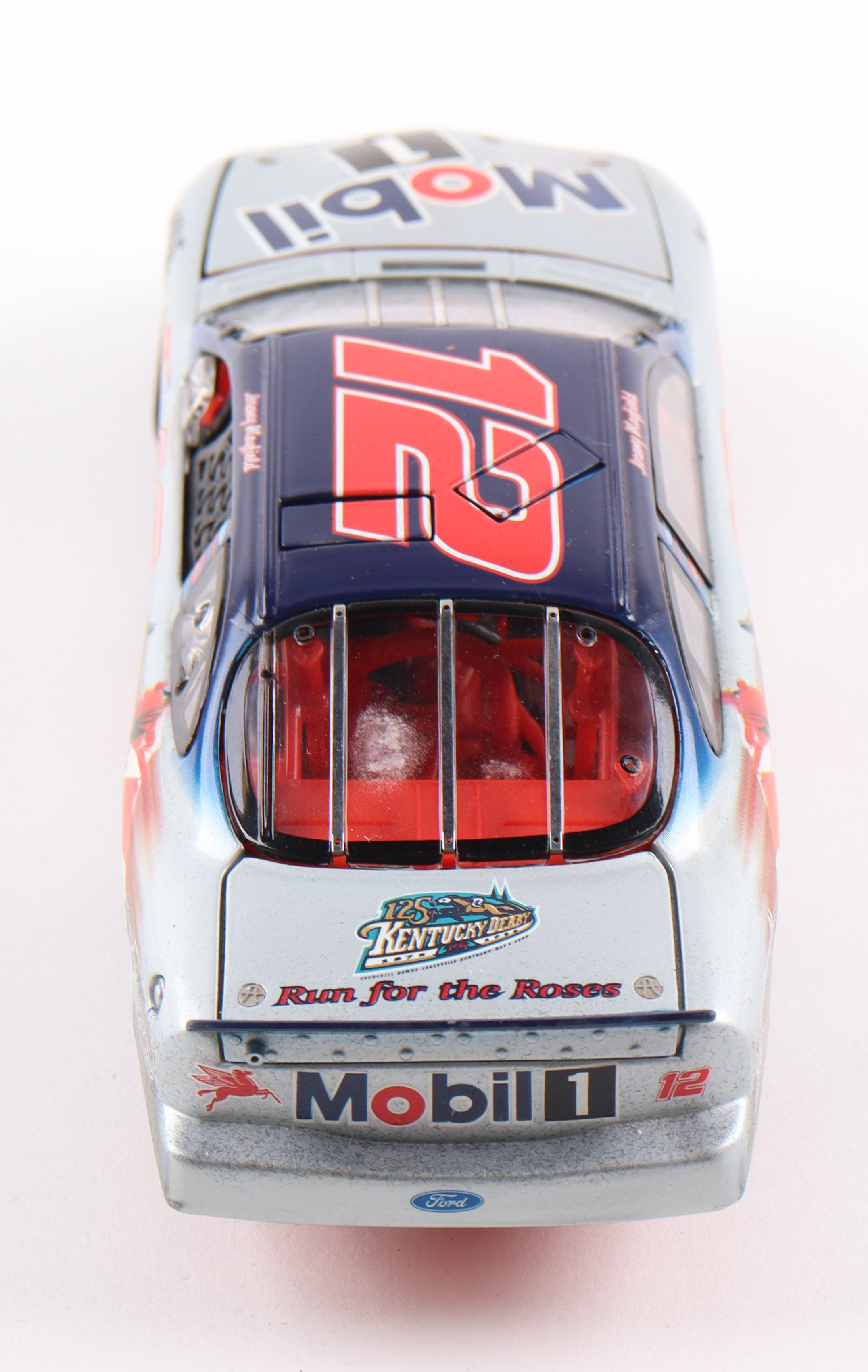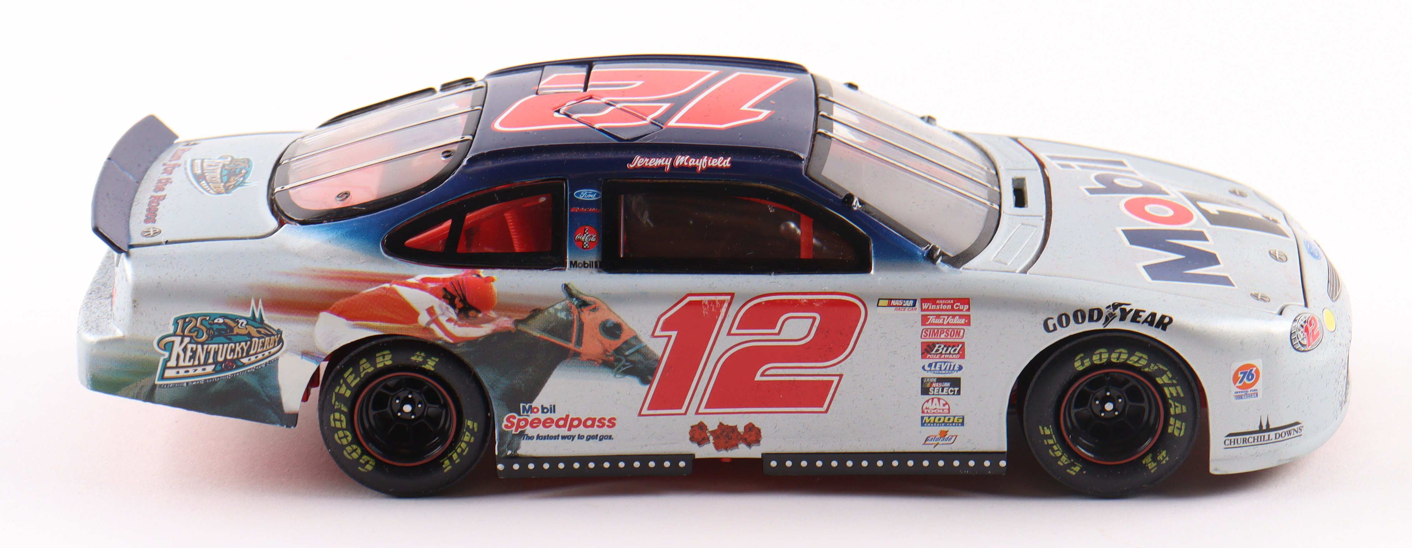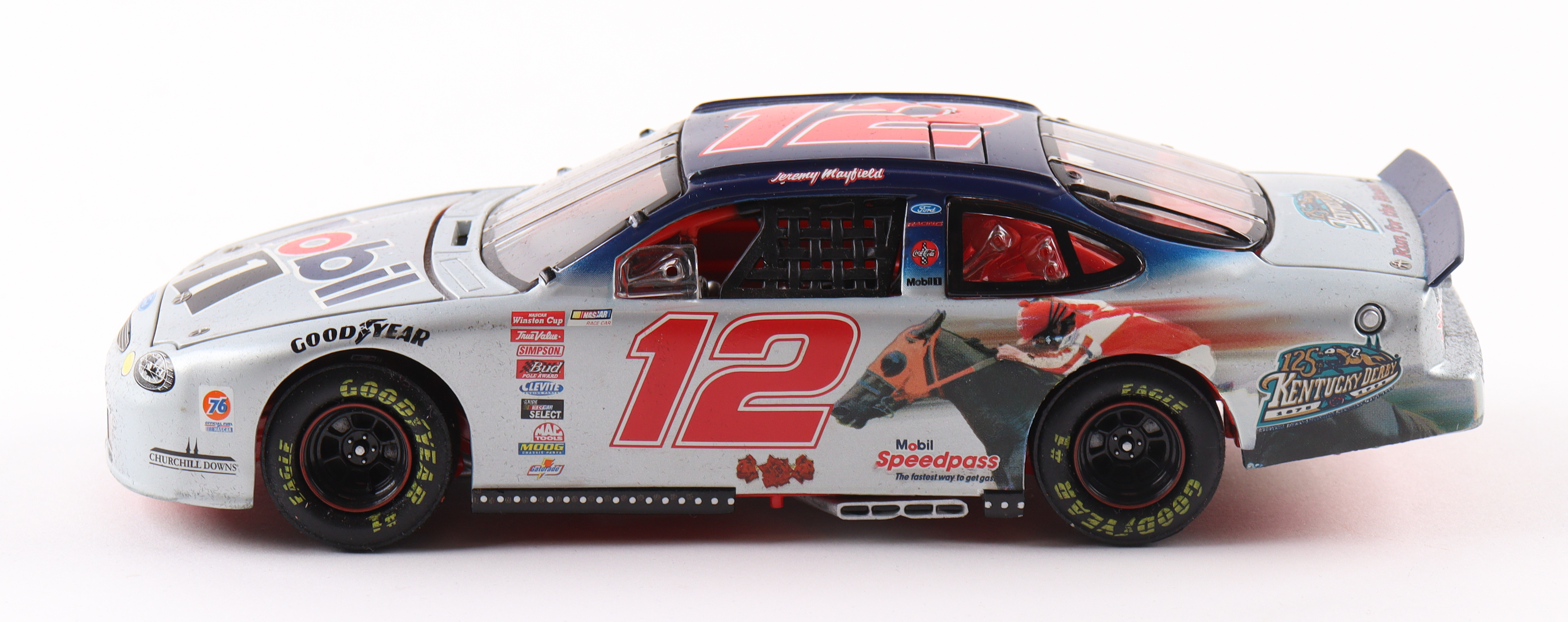 Jeremy Mayfield 1999 LE NASCAR #2 Mobil 1 Kentucky Derby 125th Anniversary 1:24 scale die-cast car. Please note, the car is unsigned and the original packaging shows signs of wear.