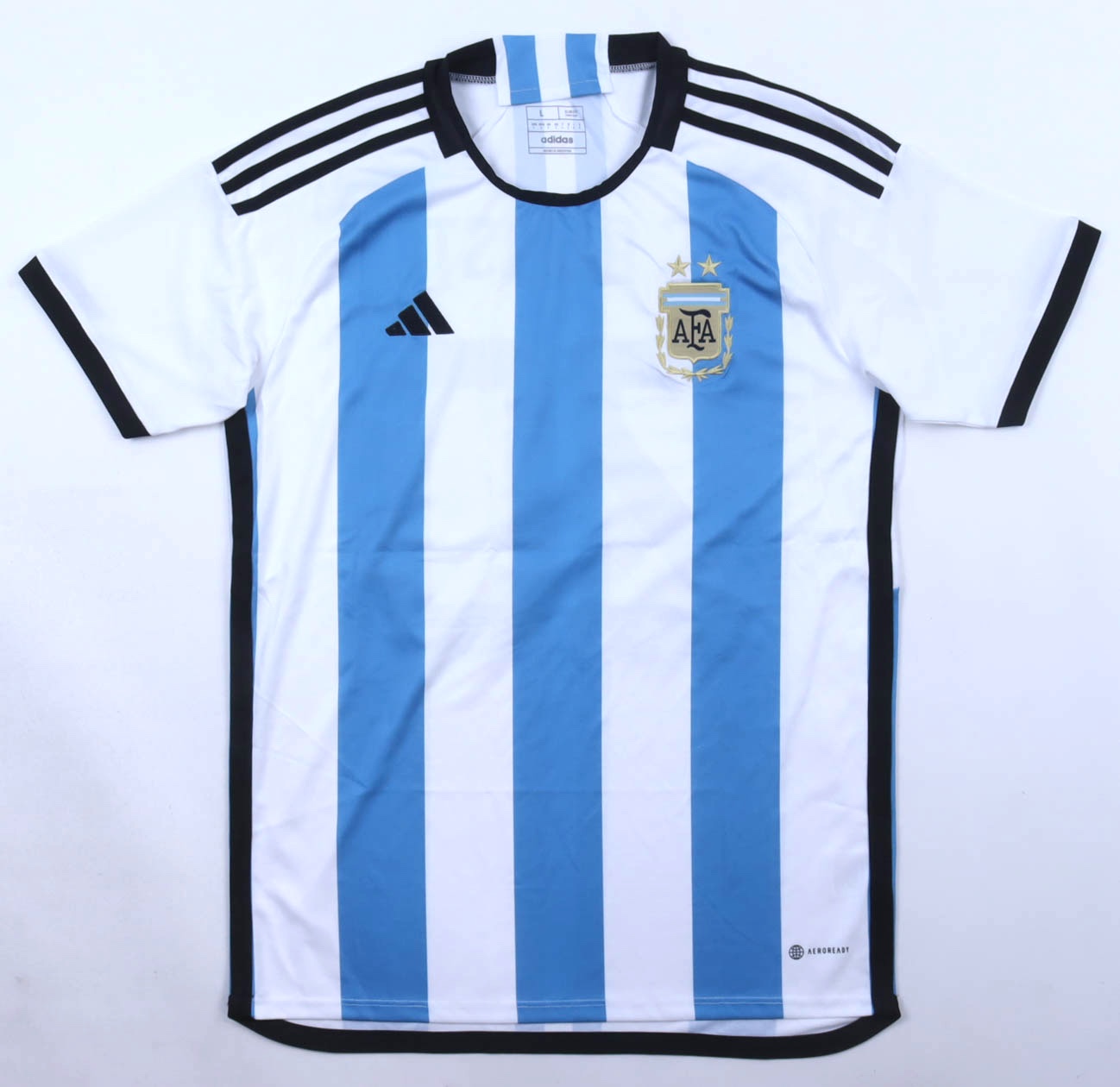 Adidas authentic jersey with everything pressed and sewn on, size L. Hand-signed by Alexis Mac Allister (Argentina National Team). Please note, there is a stain on the left sleeve.