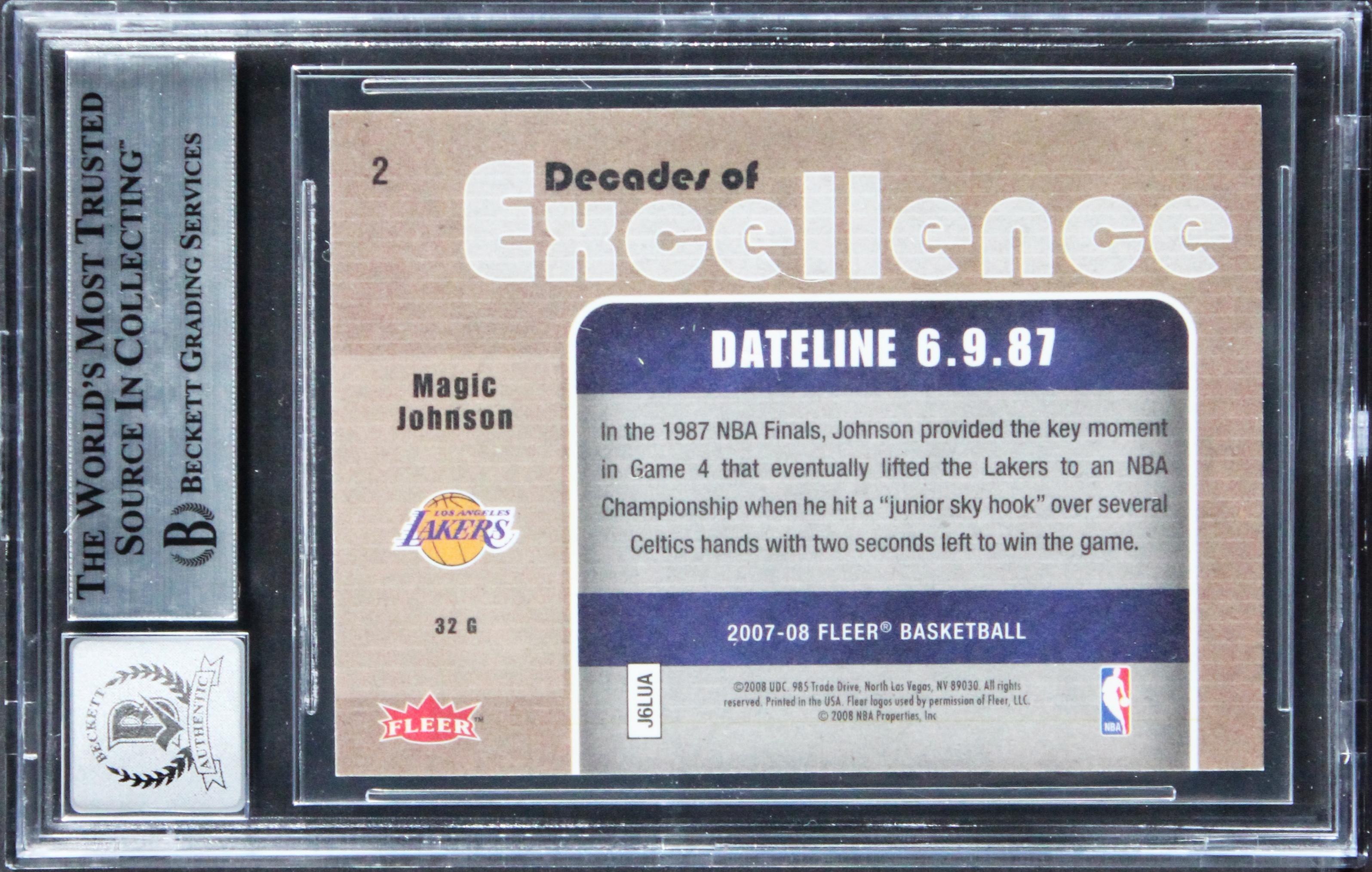 Magic Johnson Signed 2007 Fleer Decades Of Excellence #2 (BGS | Auto 10)