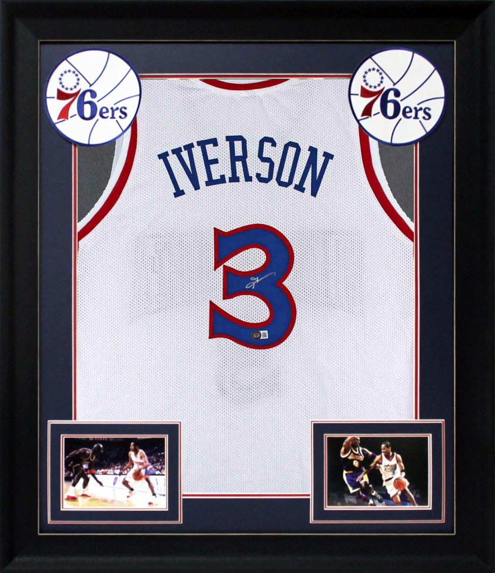 Custom frame measures 32" x 37” in size and features a jersey that has been hand-signed by Allen Iverson (HOF).
