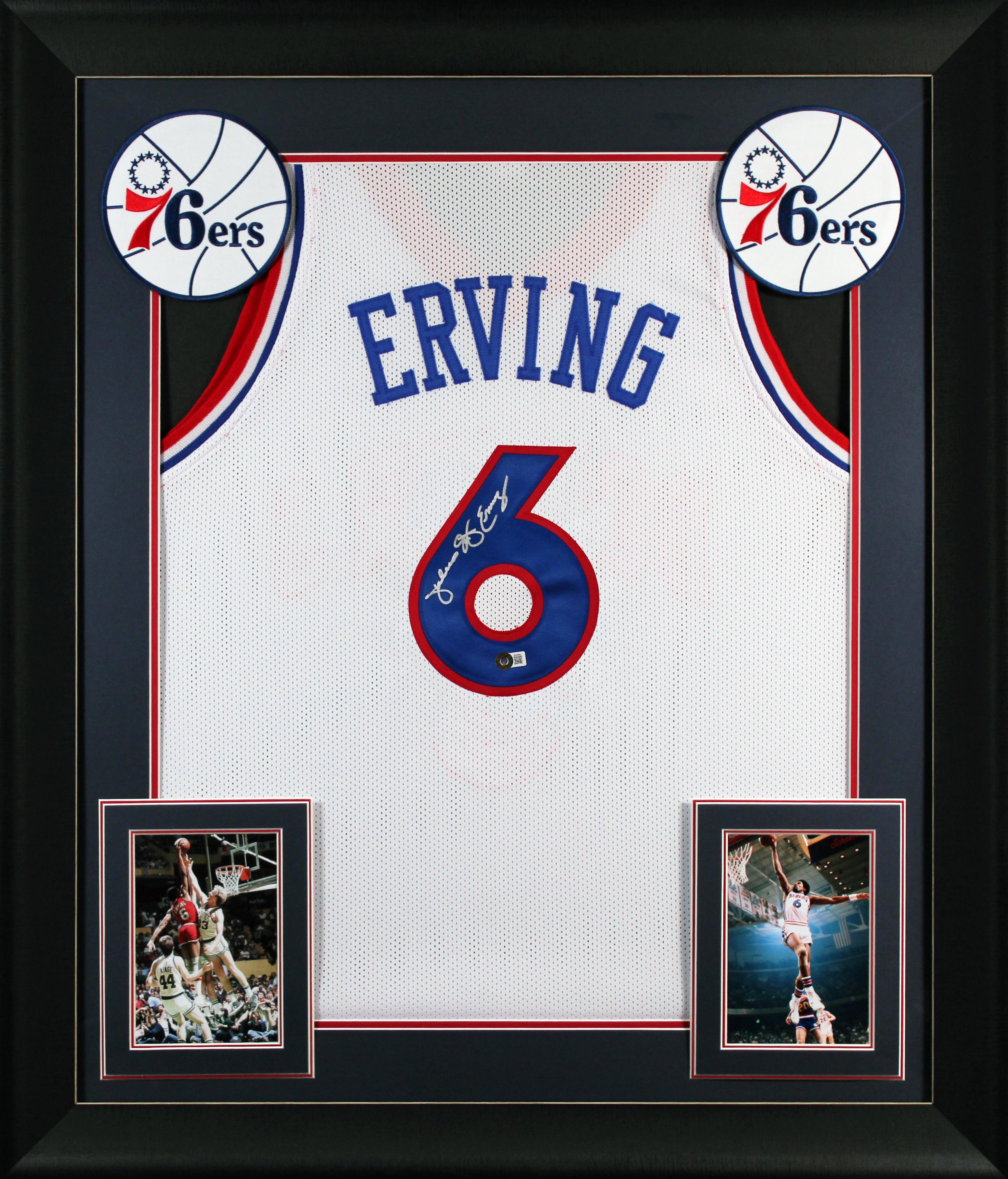 Custom frame measures 32" x 37” in size and features a jersey that has been hand-signed by Julius "Dr. J" Erving (HOF).