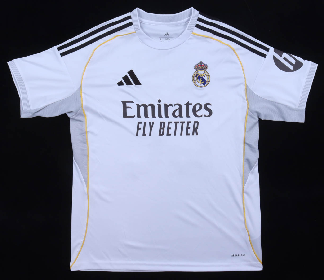 Adidas authentic jersey with everything pressed and sewn on, size L. Hand-signed by Antonio Rudiger (Real Madrid F.C.).