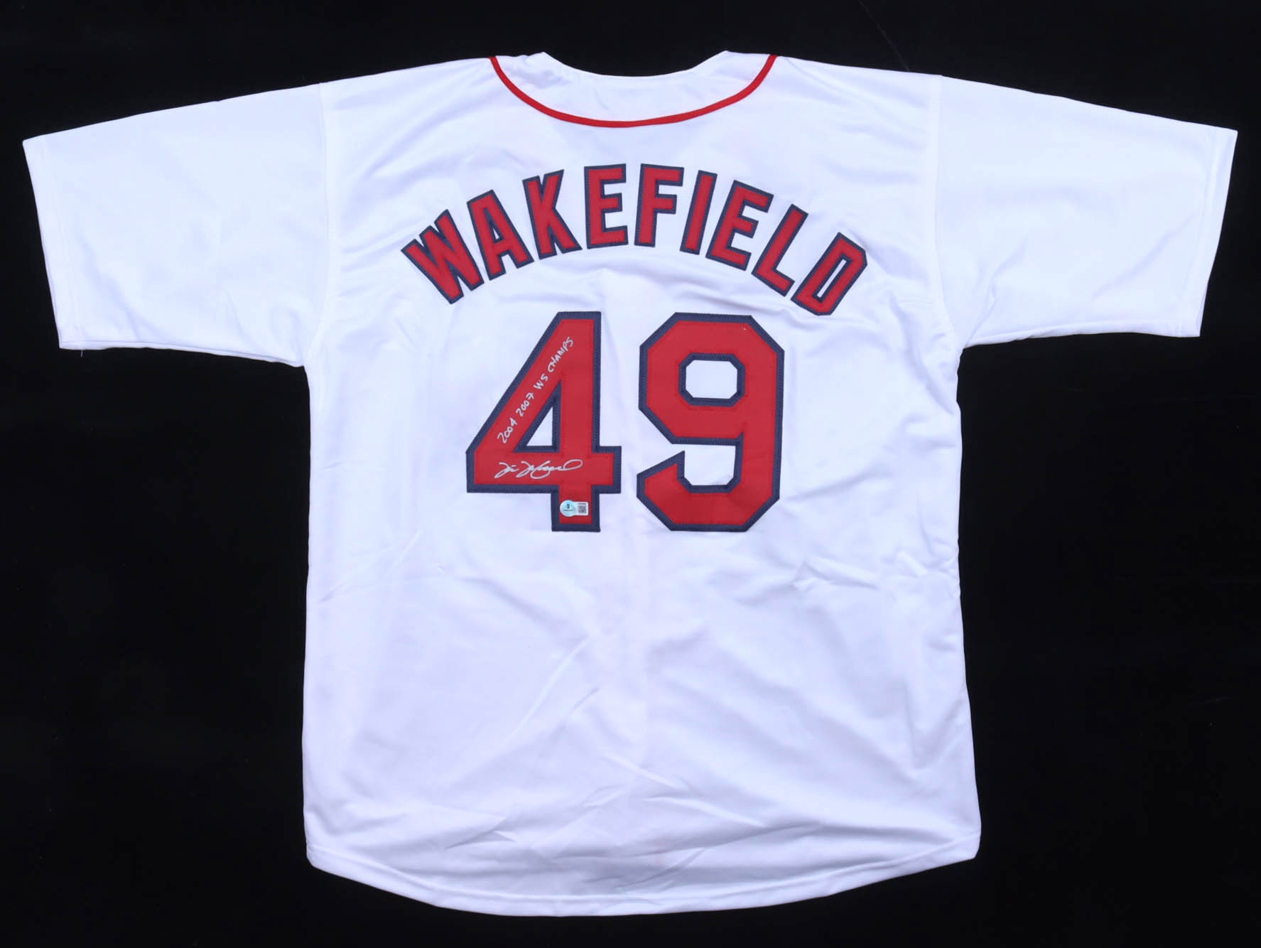 Tim Wakefield Signed Jersey Inscribed "2004 2007 WS Champs" (Beckett)