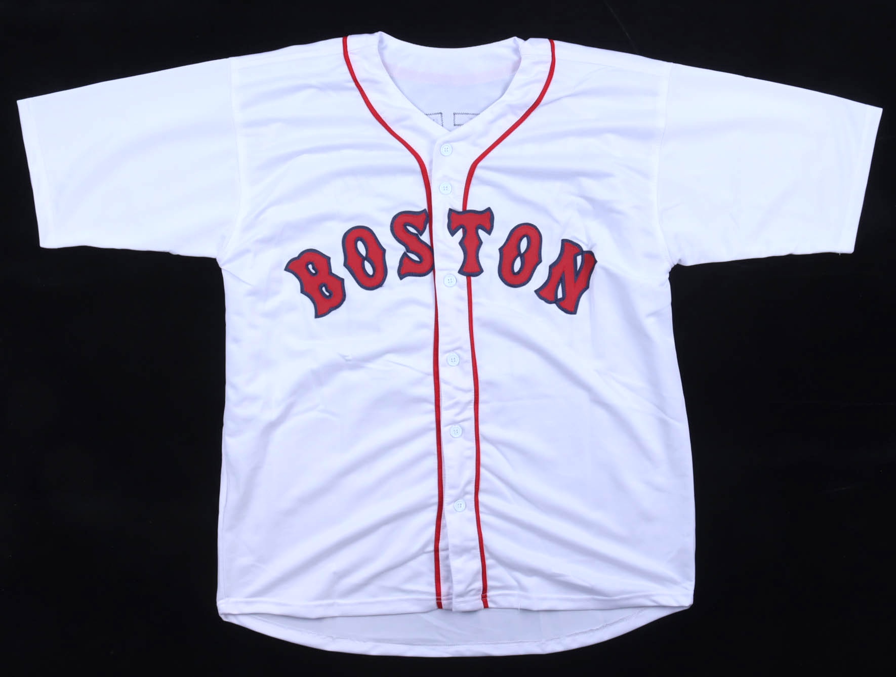 Custom jersey. Everything sewn on, size XL. Hand-signed and inscribed by Tim Wakefield (D. 2023).