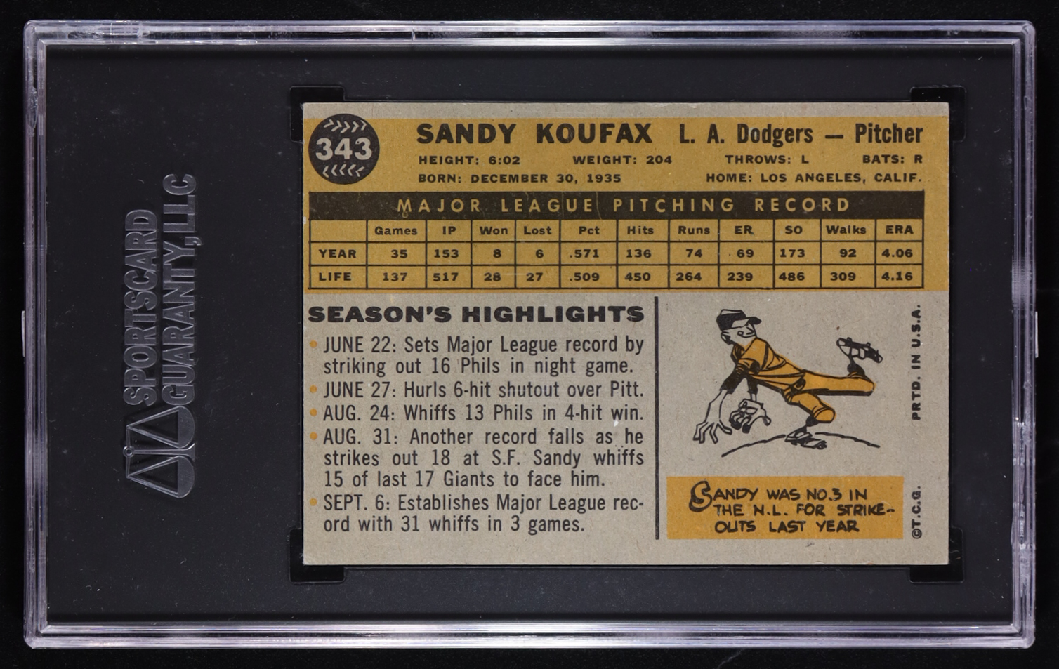 Sandy Koufax 1960 Topps #343 (SGC 5)