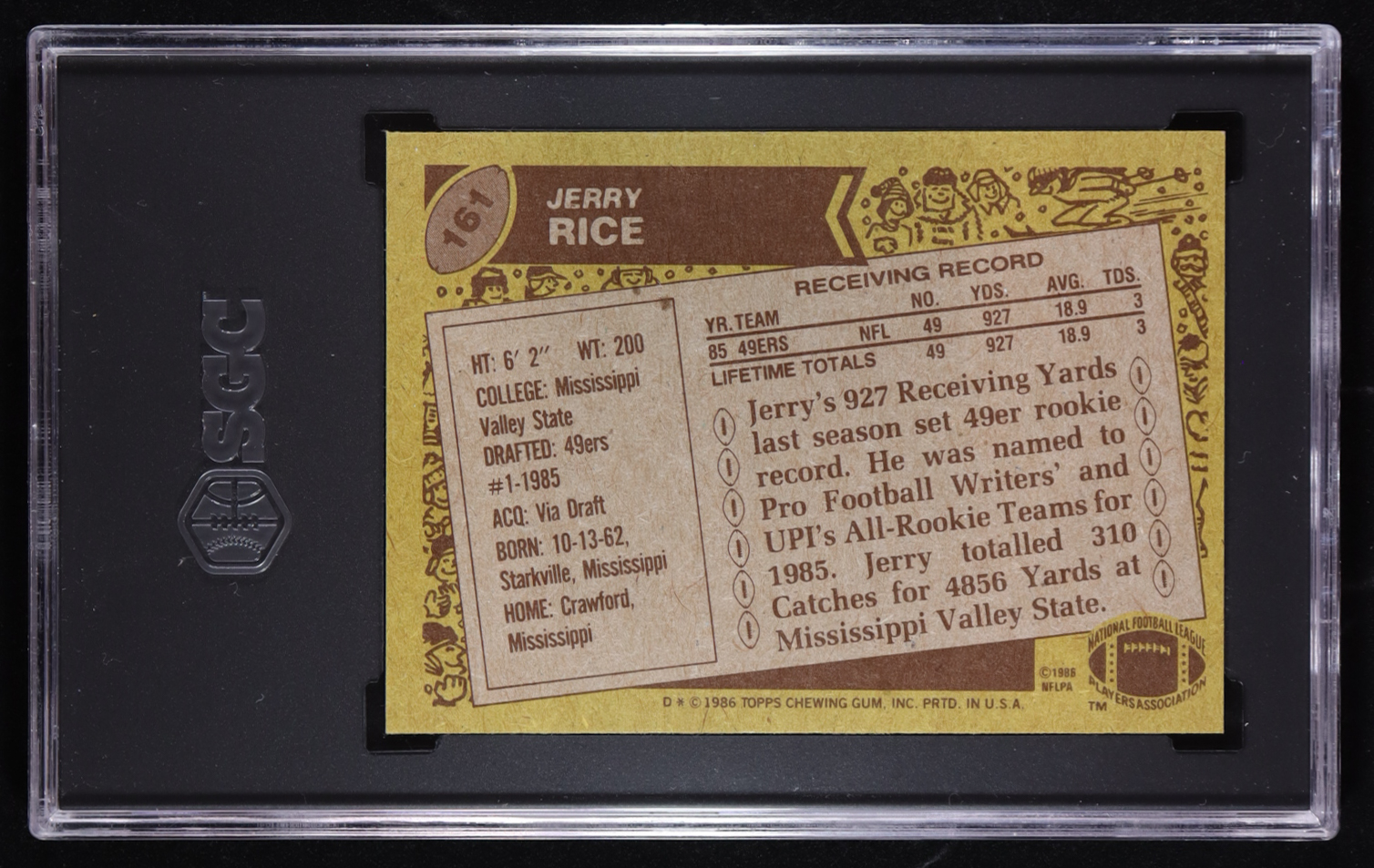 Jerry Rice 1986 Topps #161 RC (SGC 6)