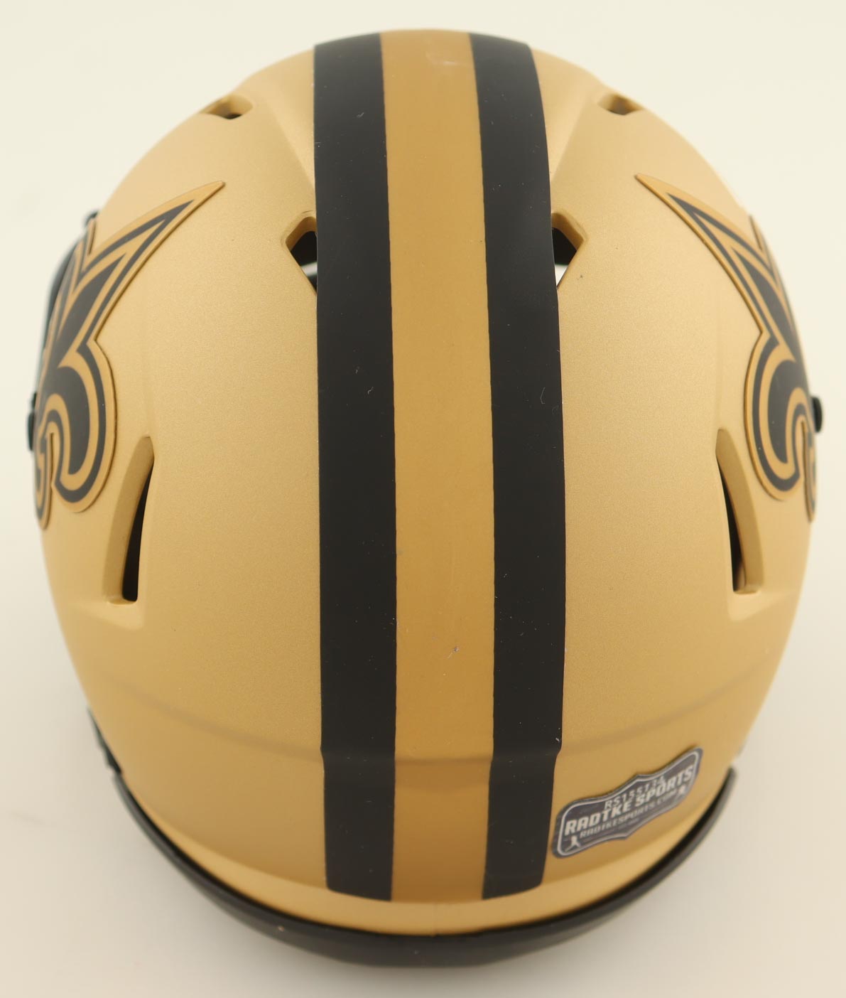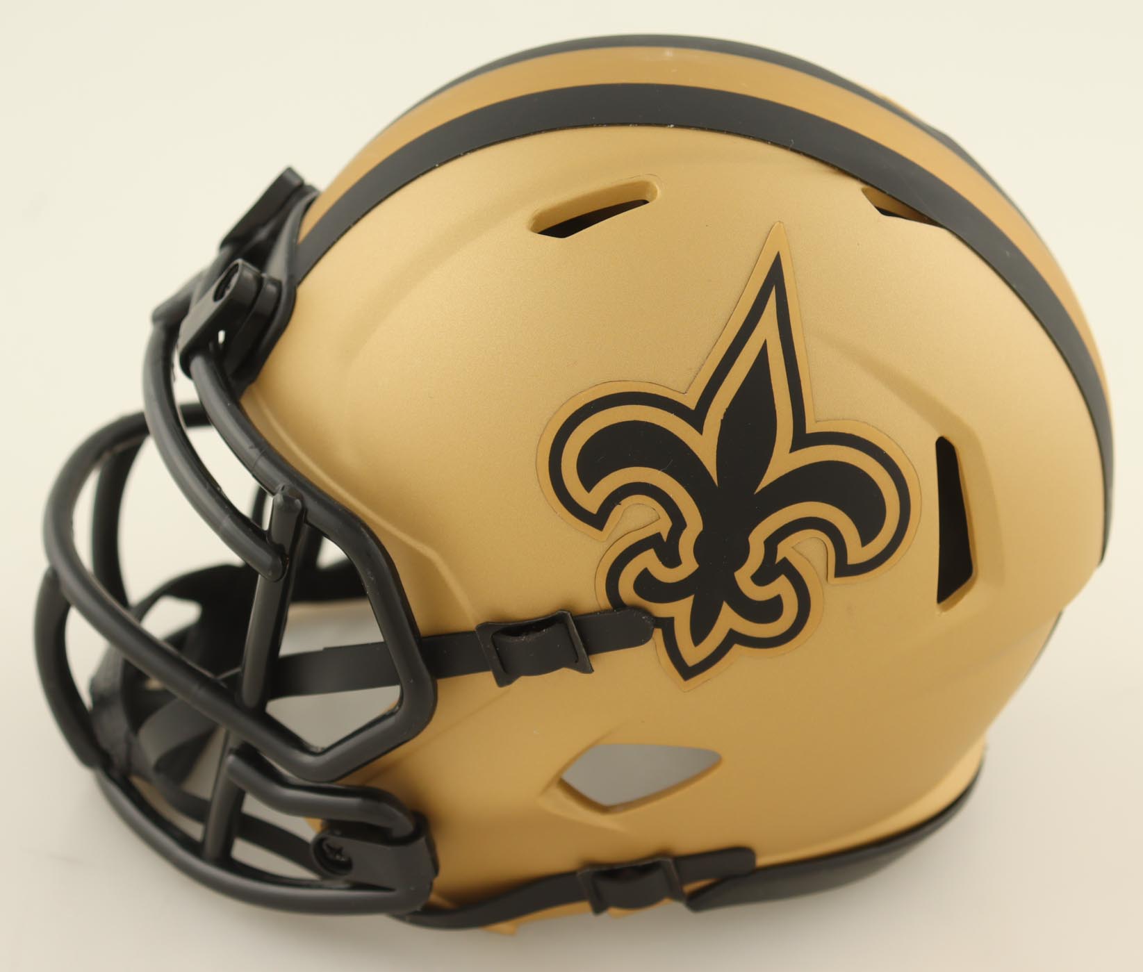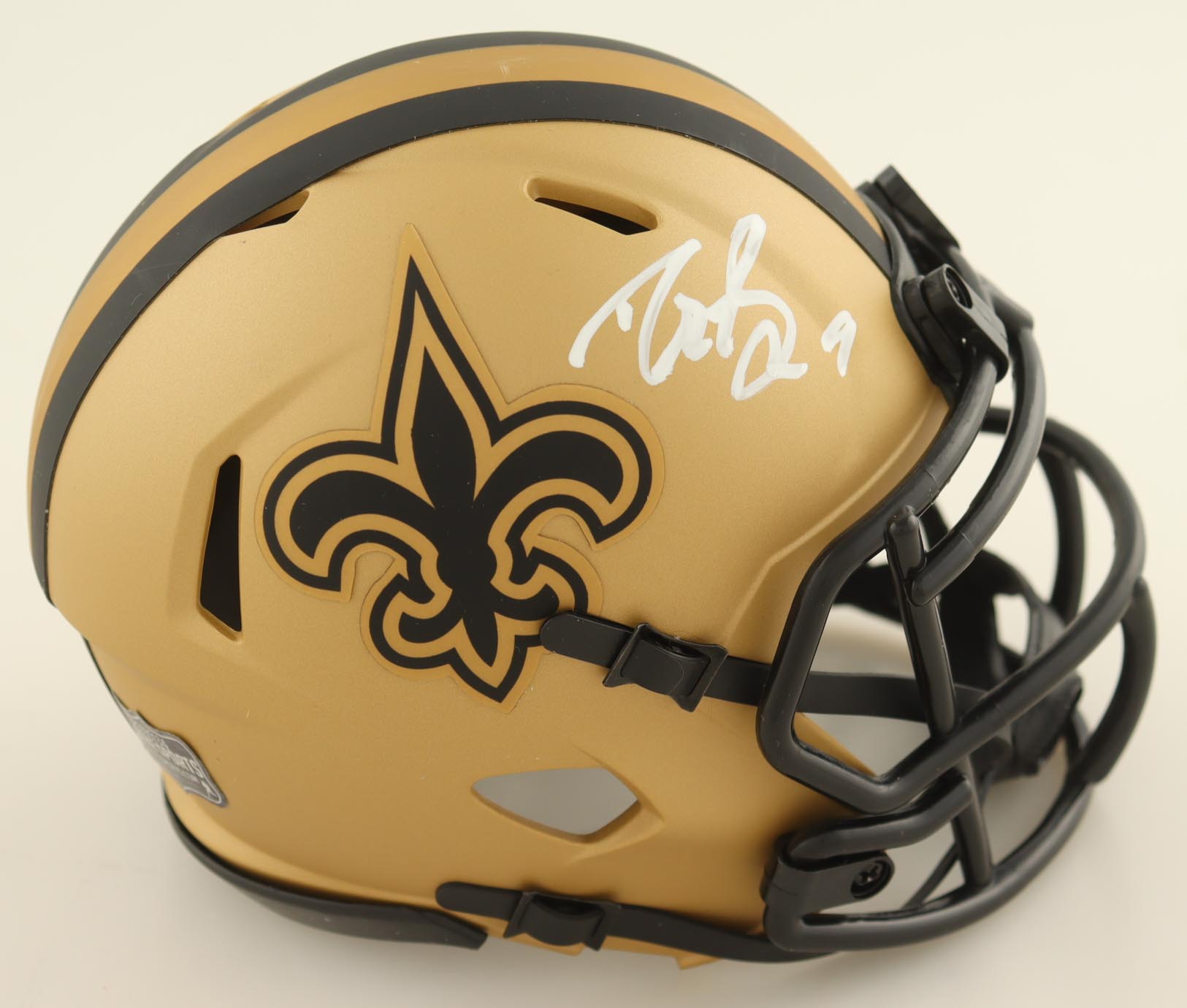 Riddell New Orleans Saints Rave Alternate Speed Mini Helmet. Hand-signed by Drew Brees (HOF). Please note, the display case is included.