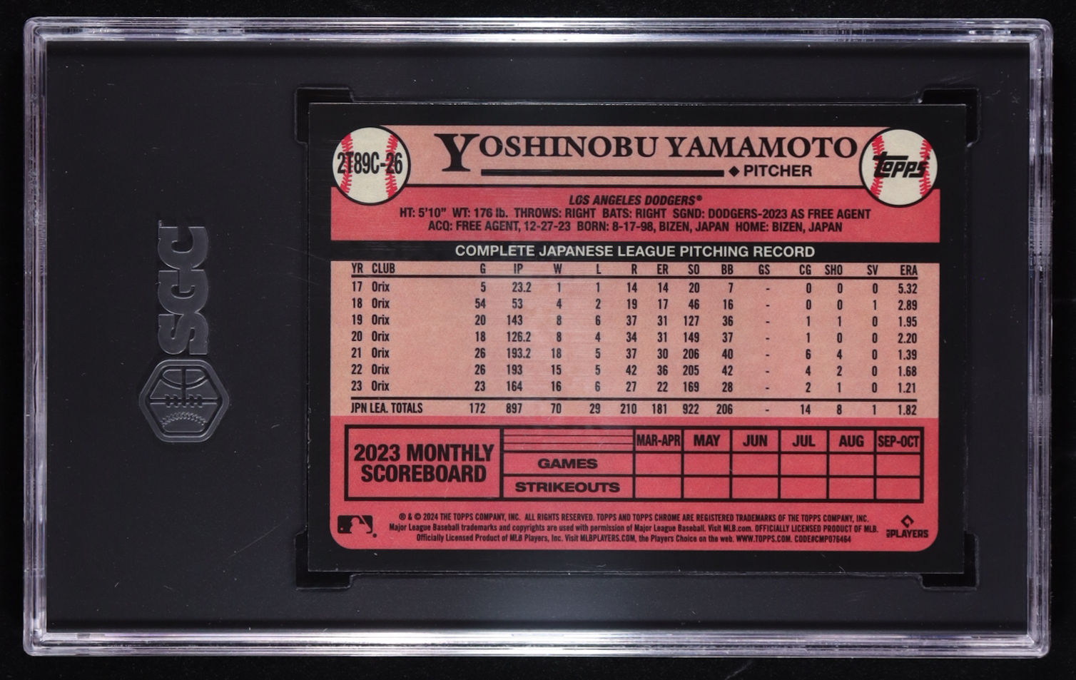 Yoshinobu Yamamoto 2024 Topps '89 Topps Silver Pack Chrome Series 2 #2T89C26 RC (SGC 10)