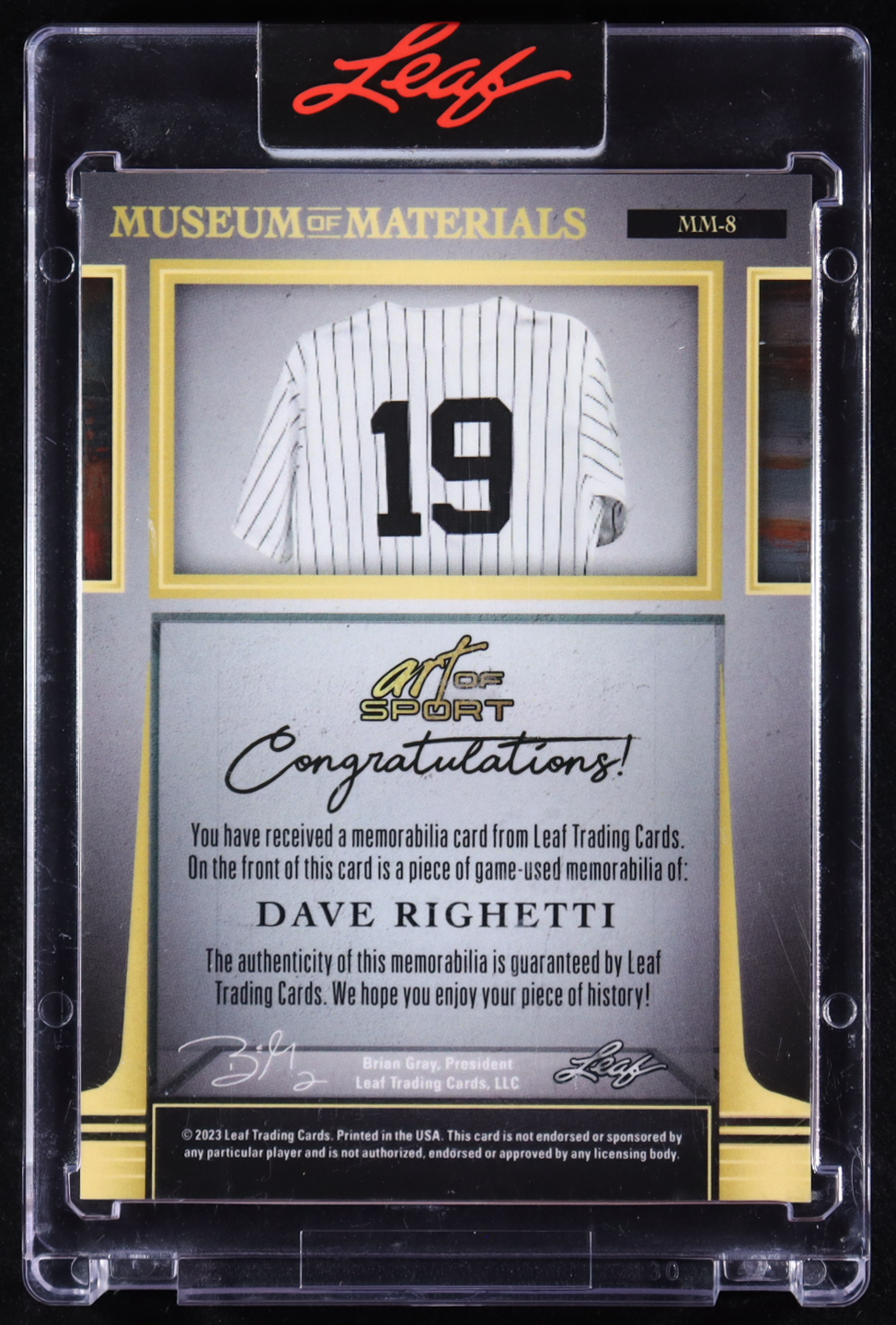 Dave Righetti 2023 Leaf Art of Sport Museum of Materials Purple Spectrum Holofoil Game-Used #MM8 #6/6