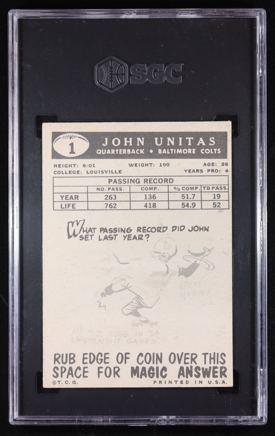 Johnny Unitas 1959 Topps #1 (SGC 5)