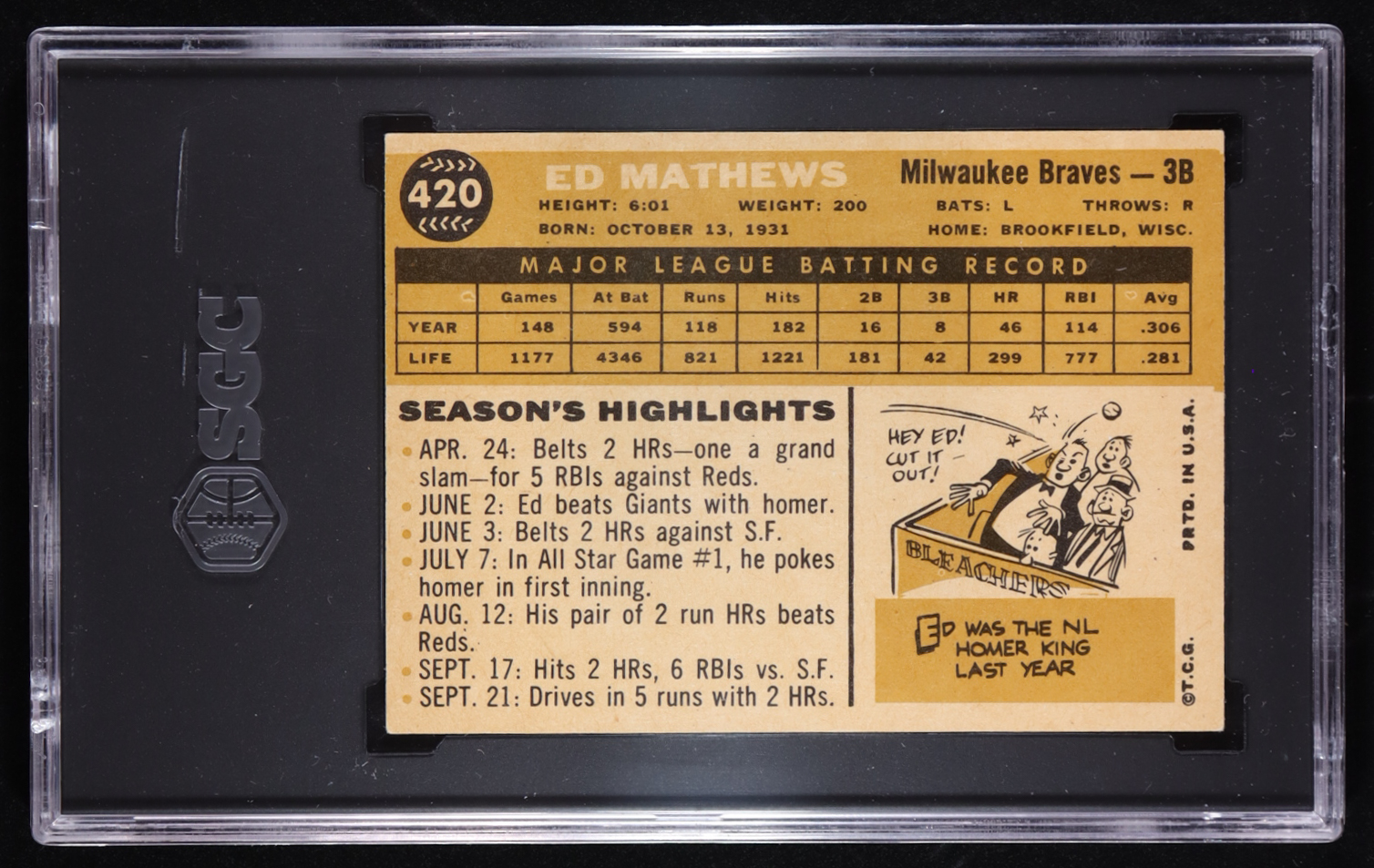 Ed Mathews 1960 Topps #420 (SGC 6)