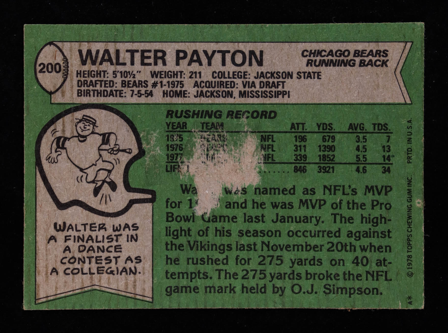 Walter Payton 1978 Topps #200 AP