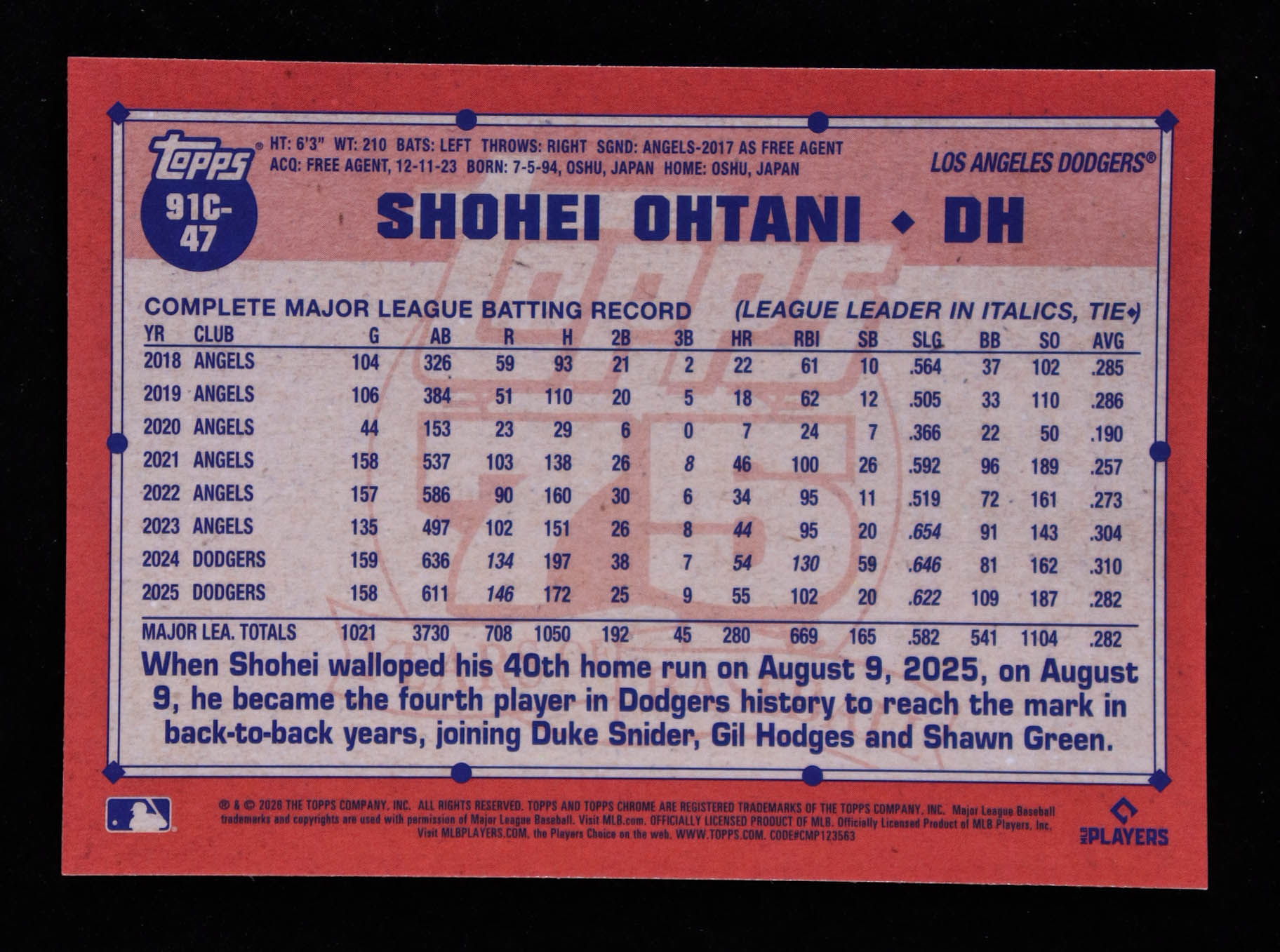 Shohei Ohtani 2026 Topps '91 Topps Silver Pack Chrome #91C47