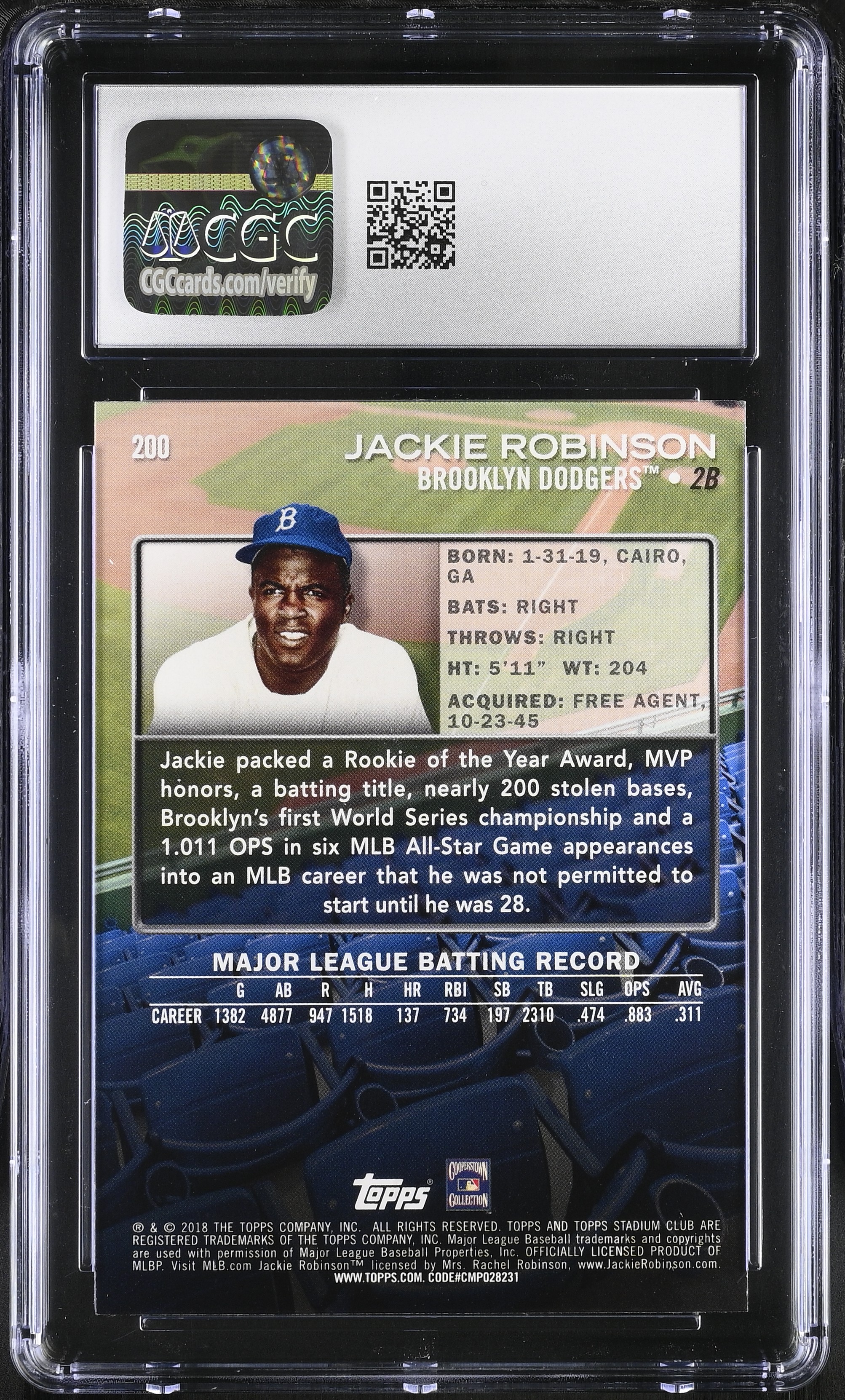 Jackie Robinson 2018 Topps Stadium Club Red Foil #200 (CGC 10)