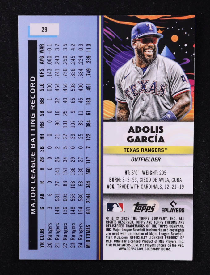 Adolis Garcia 2025 Topps Cosmic Chrome Green Space Dust Refractors #29 #43/75