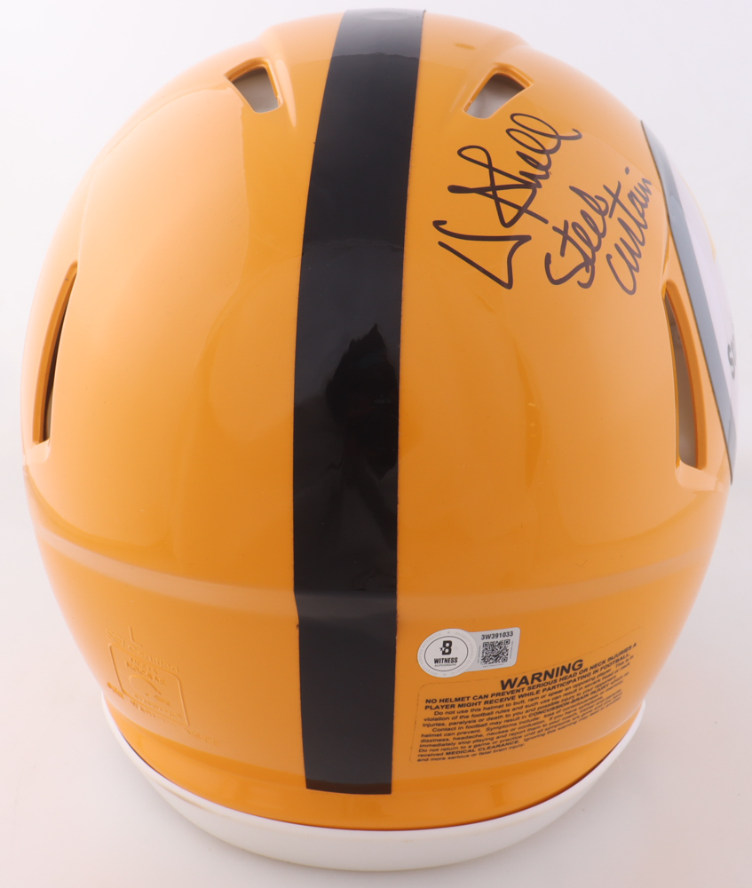 Riddell Pittsburgh Steelers full-size authentic on-field speed helmet has been hand-signed by Donnie Shell and Jon Ham.