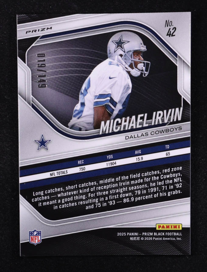Michael Irvin 2025 Panini Prizm Black Prizms Purple Ice #42 #019/149