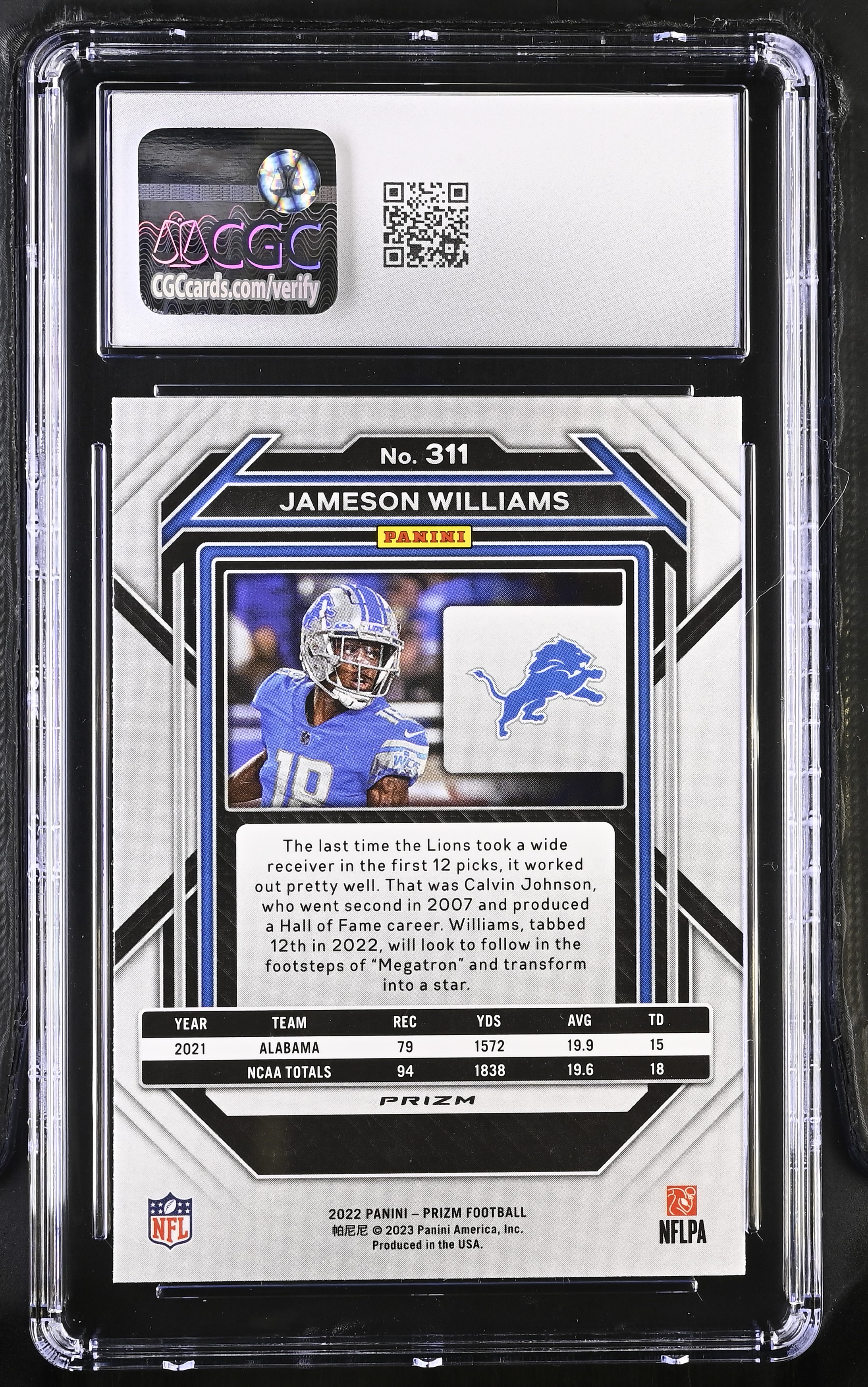 Jameson Williams 2022 Panini Prizm Prizms Silver #311 RC (CGC 9)
