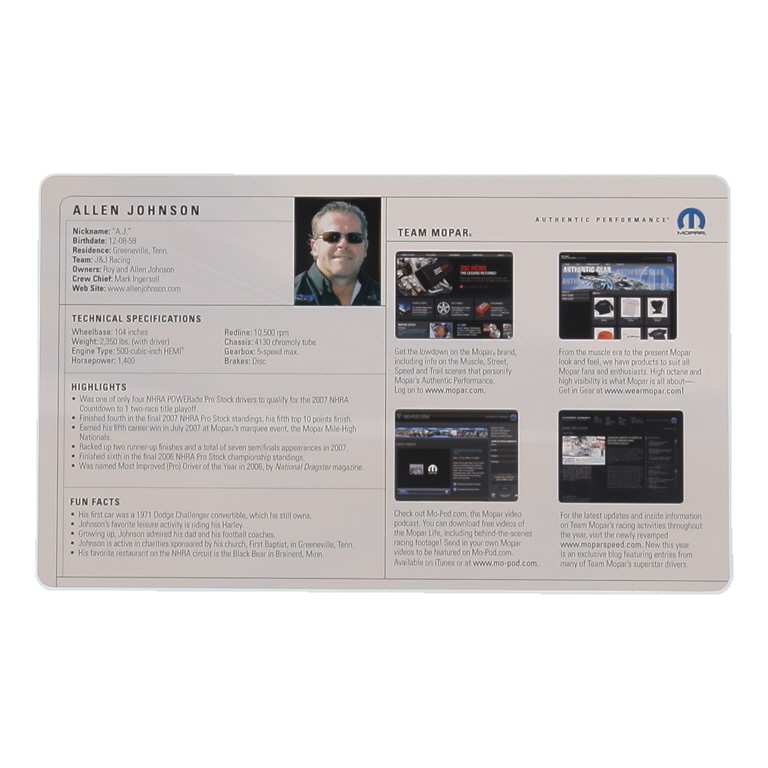 Allen Johnson Signed NHRA 6x10 Hero Card (Beckett)