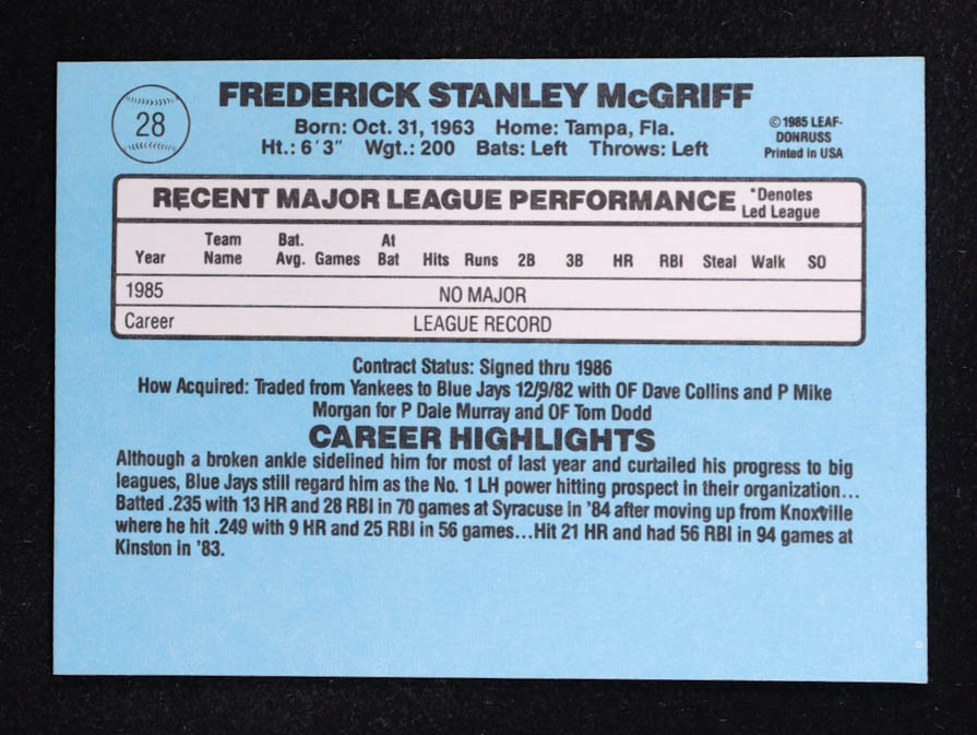Fred McGriff 1986 Donruss #28 RC