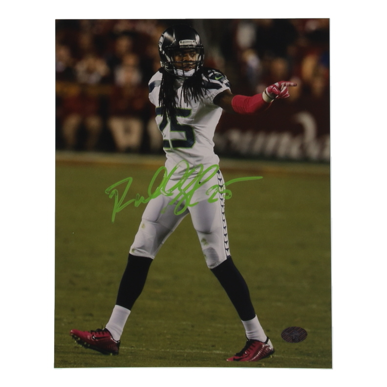 Photo measures 8" x 10" in size and has been hand-signed by Richard Sherman (Seattle Seahawks).