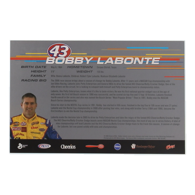 Bobby Labonte Signed NASCAR 6x9 Hero Card (Beckett)