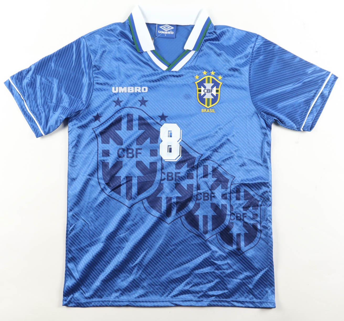 Umbro authentic jersey with everything pressed and sewn on, size L. Hand-signed by Dunga.