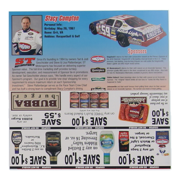 Stacy Compton Signed NASCAR 8x8 Hero Card (Beckett)