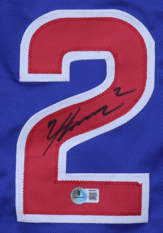 Custom jersey, everything is sewn on, size XL. Hand-signed by Nico Hoerner.