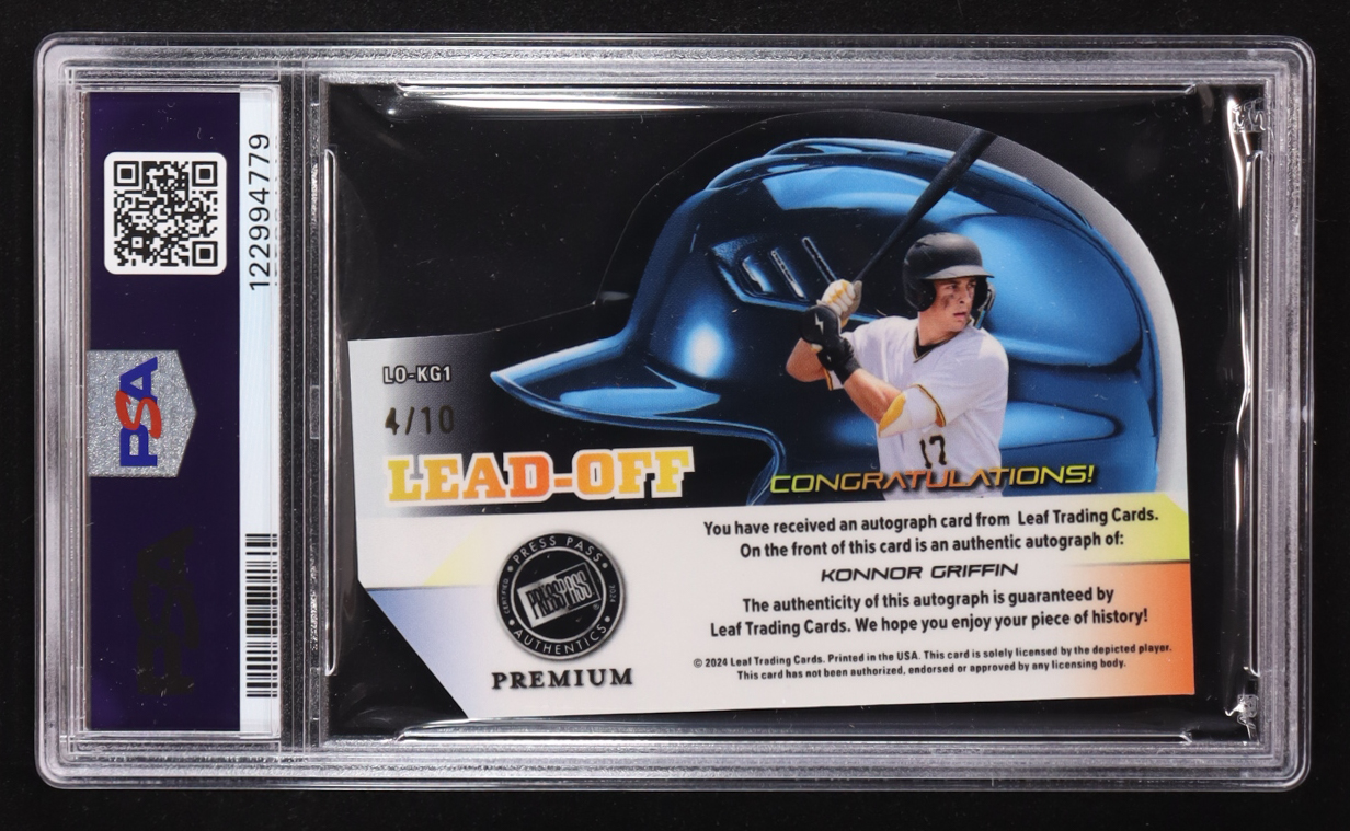 Konnor Griffin 2024 Press Pass Premium Lead Off Autographs Crystals Silver #LOKG1 #4/10 (PSA 10)