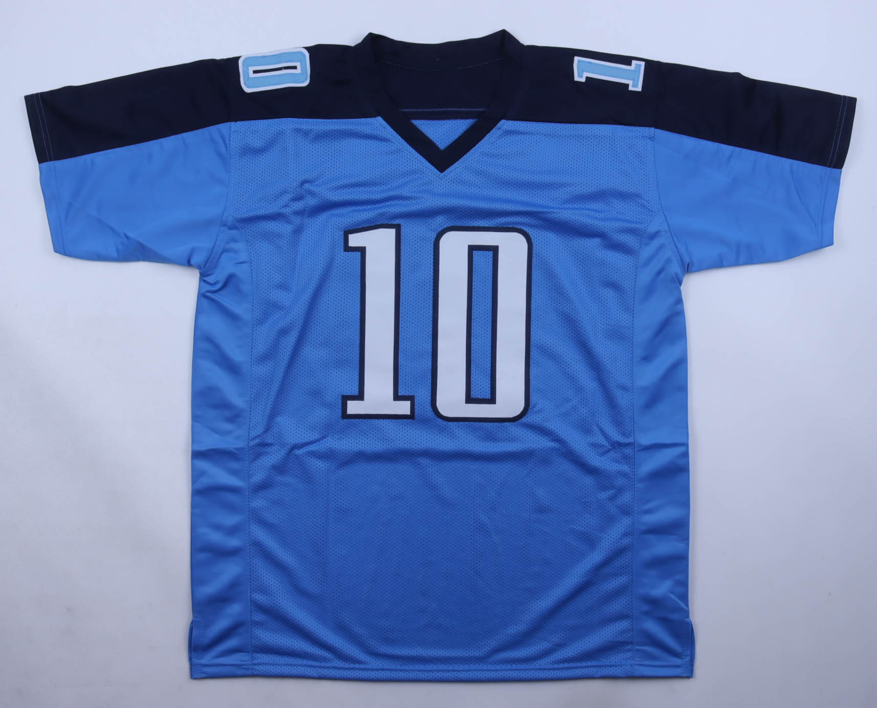 Custom jersey with everything sewn on, size XL. Hand-signed and inscribed by Vince Young (Tennessee Titans).