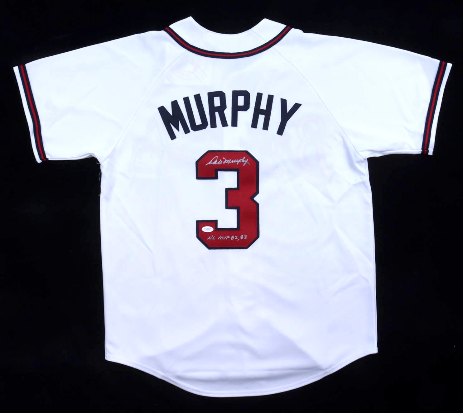 Majestic jersey. Everything is sewn on, size L. Hand-signed and inscribed by Dale Murphy (Atlanta Braves).