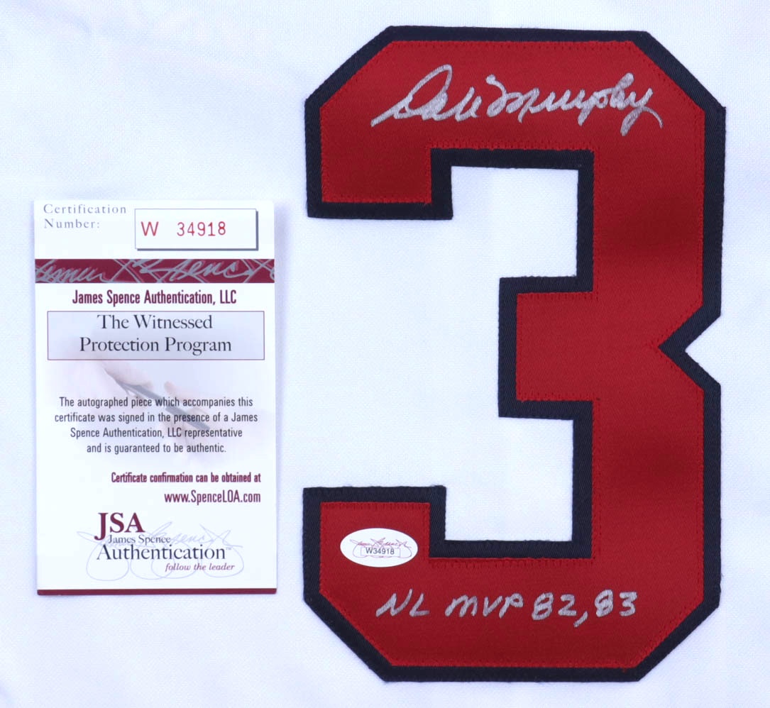 Dale Murphy Signed Braves Majestic Authentic Jersey Inscribed "NL MVP 82, 83" (JSA)