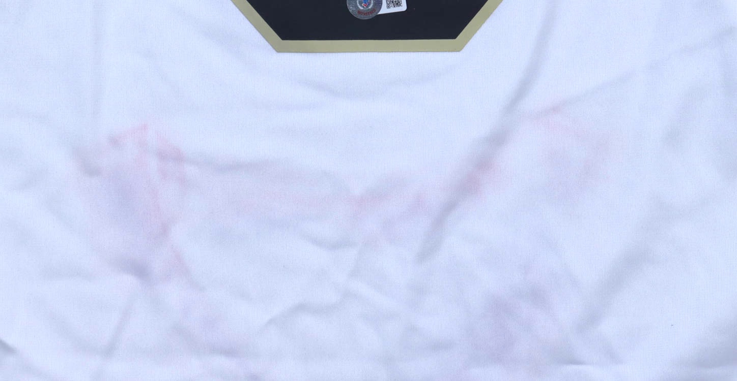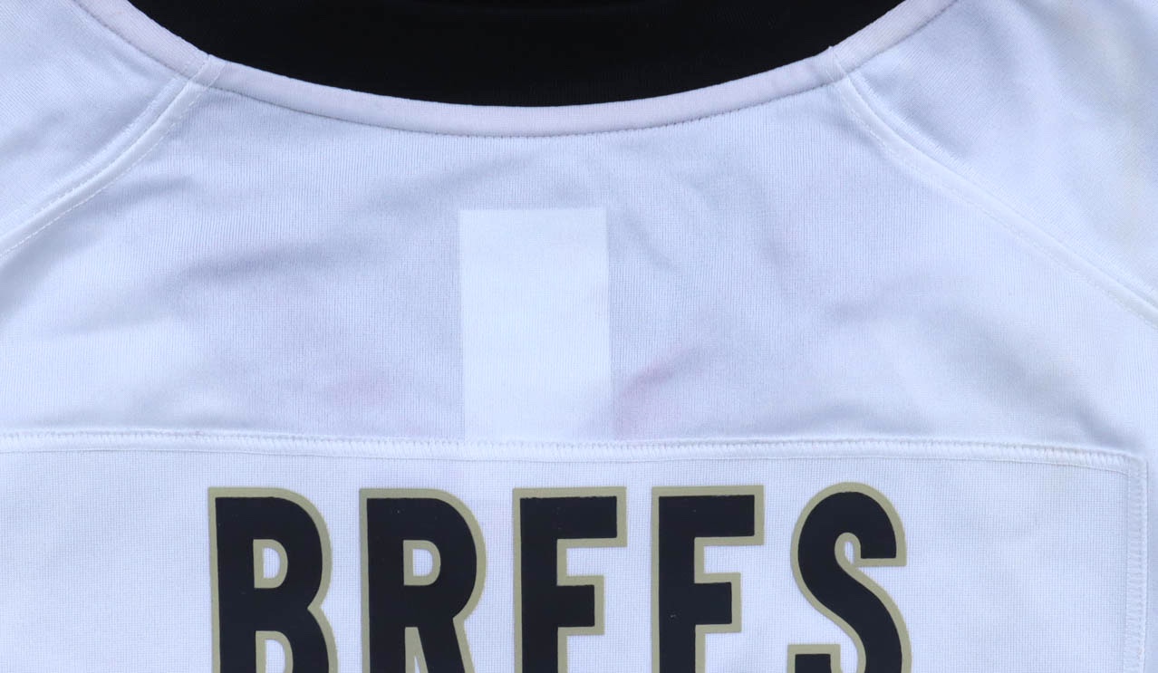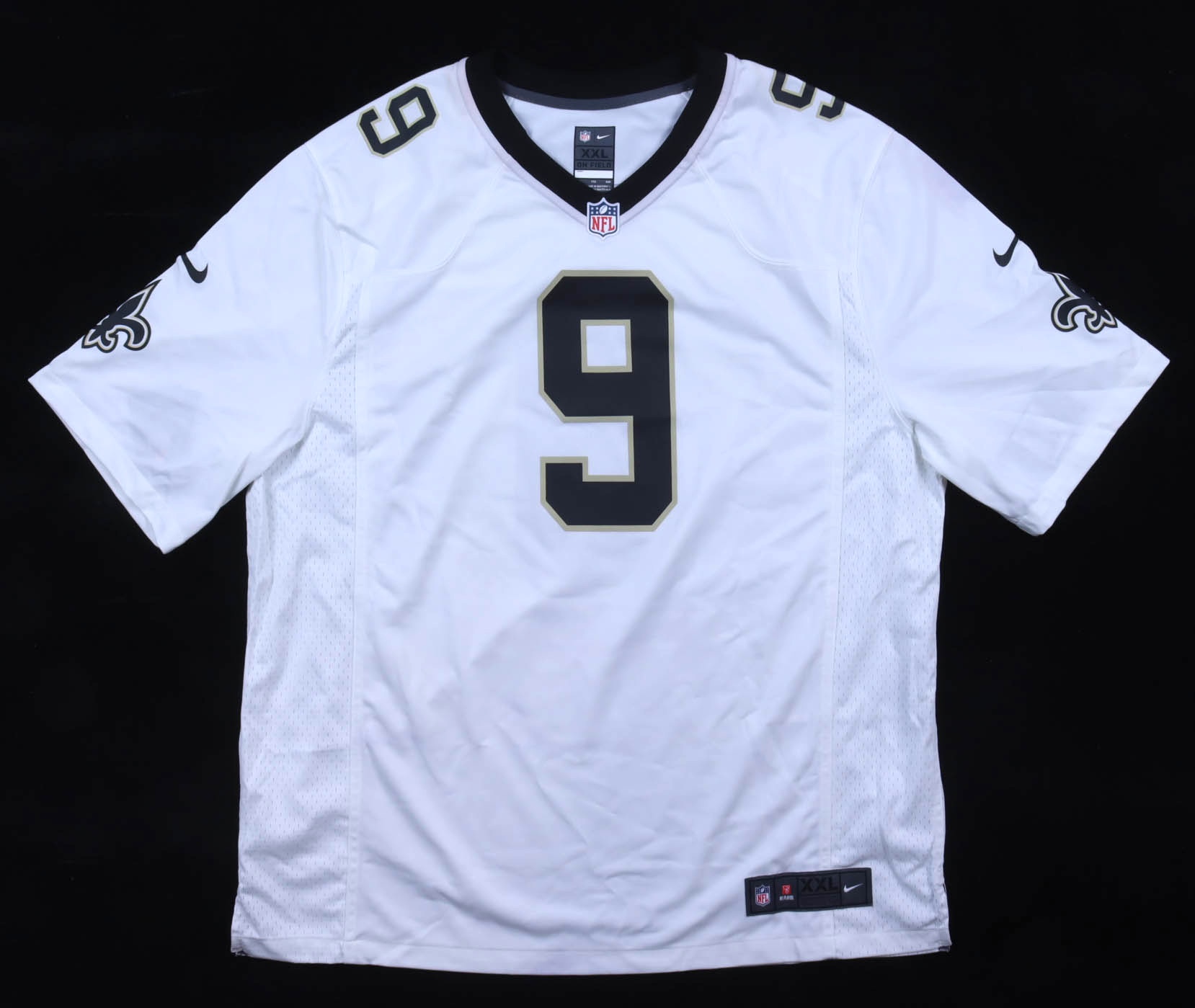 Nike authentic jersey with everything pressed on, size XXL. Hand-signed by Drew Brees (New Orleans Saints). Please note, there is staining above the players name and below the reverse number. See photos regarding the condition of the item.