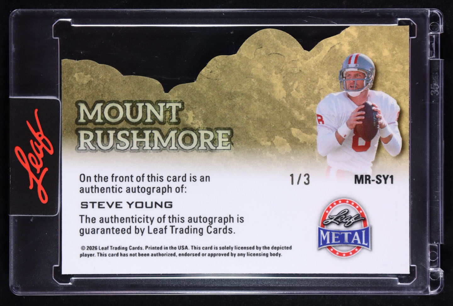 Steve Young 2026 Leaf Metal Presidents' Day Mount Rushmore Blue Autographs #MR-SY1 #1/3