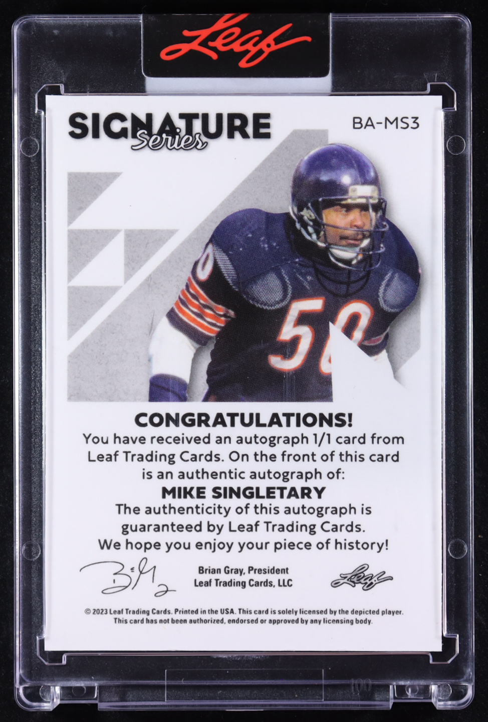 Mike Singletary 2023 Leaf Signature Series #BAMS3 #1/1
