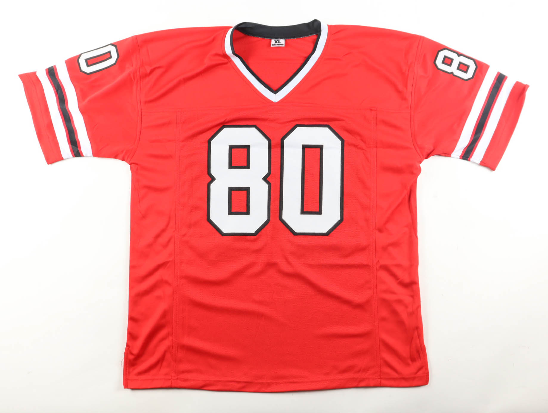 Custom jersey with everything sewn on, size XL. Hand-signed and inscribed by Andre Rison (Atlanta Falcons).