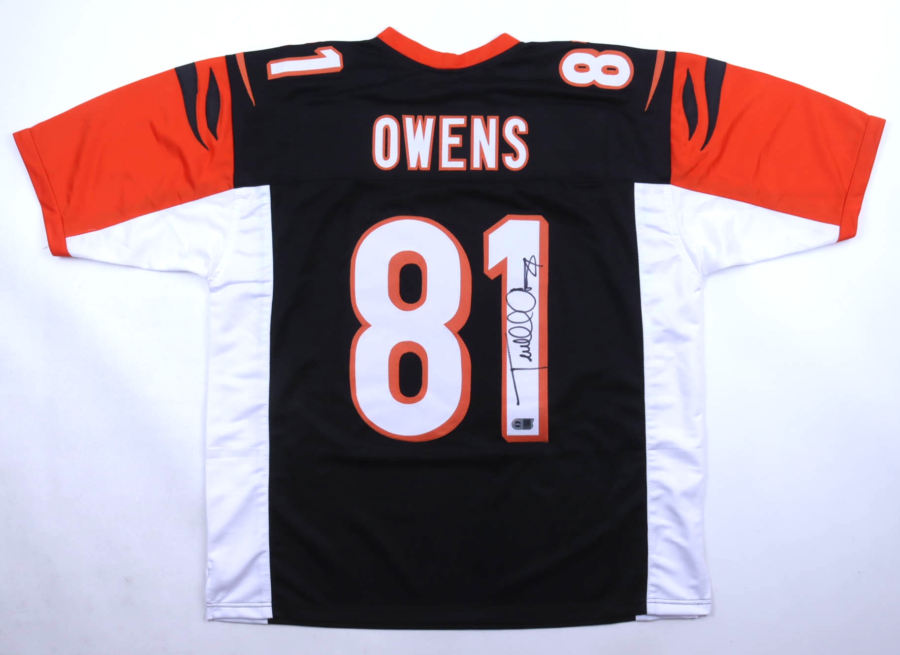 Custom jersey with everything sewn on, size XL. Hand-signed by Terrell Owens (HOF).
