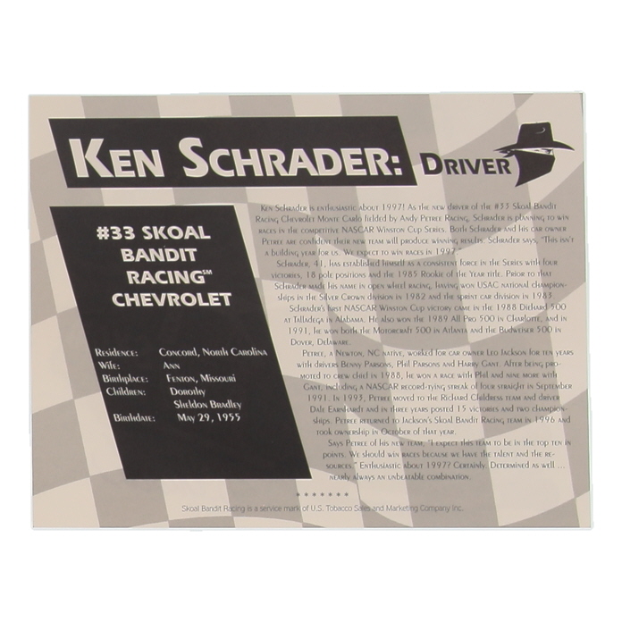 Ken Schrader Signed NASCAR 8x10 Hero Card (Beckett)