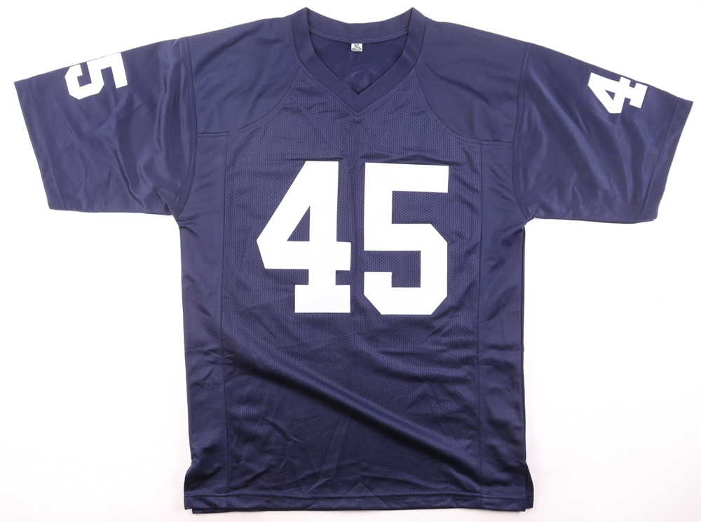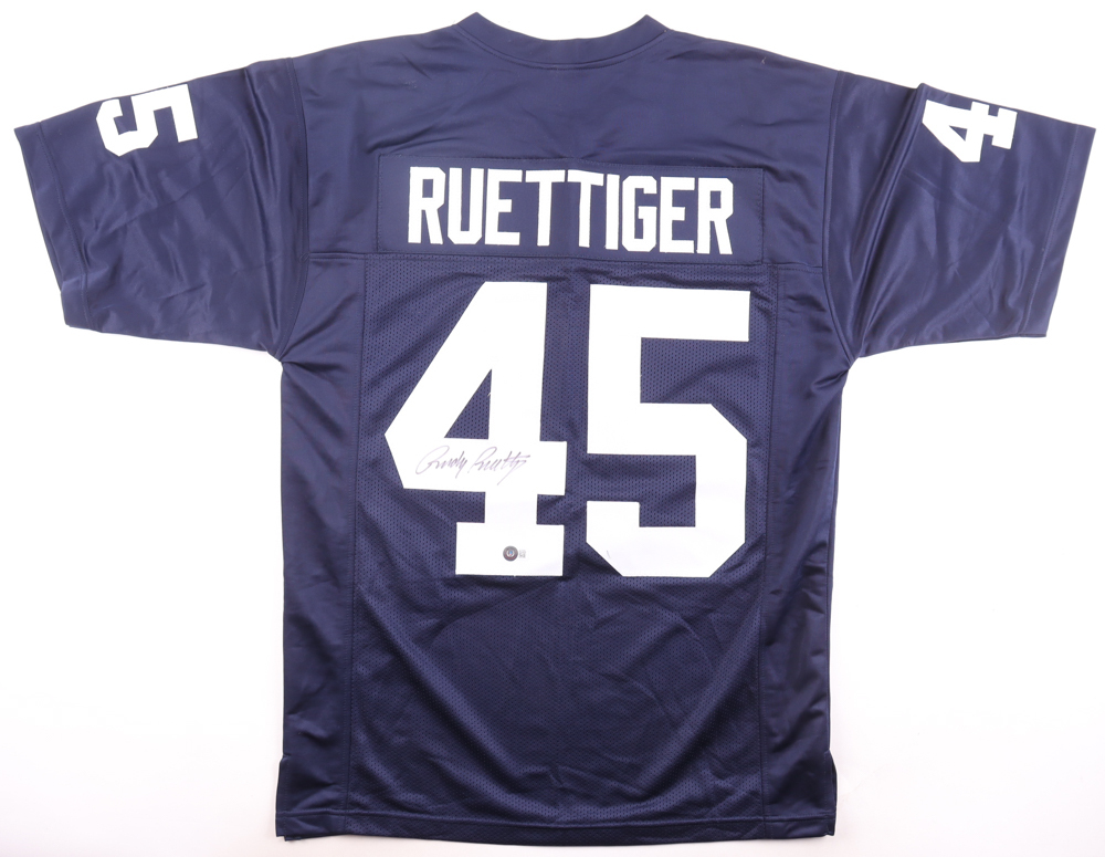 Custom jersey with everything sewn on, size XL. Hand-signed by Rudy Ruettiger.