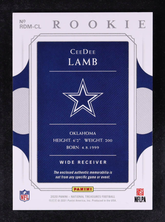 CeeDee Lamb 2020 Panini National Treasures Rookie Dual Materials Red Jersey Number #24 #66/88 RC