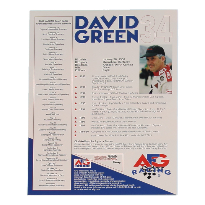 David Green Signed NASCAR 8x10 Hero Card (Beckett)